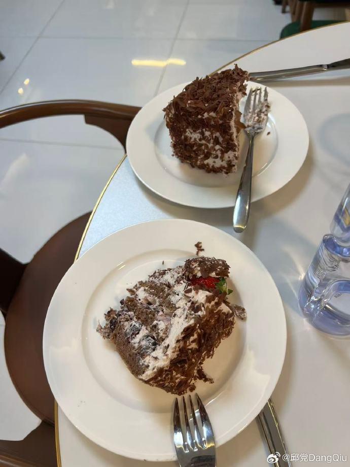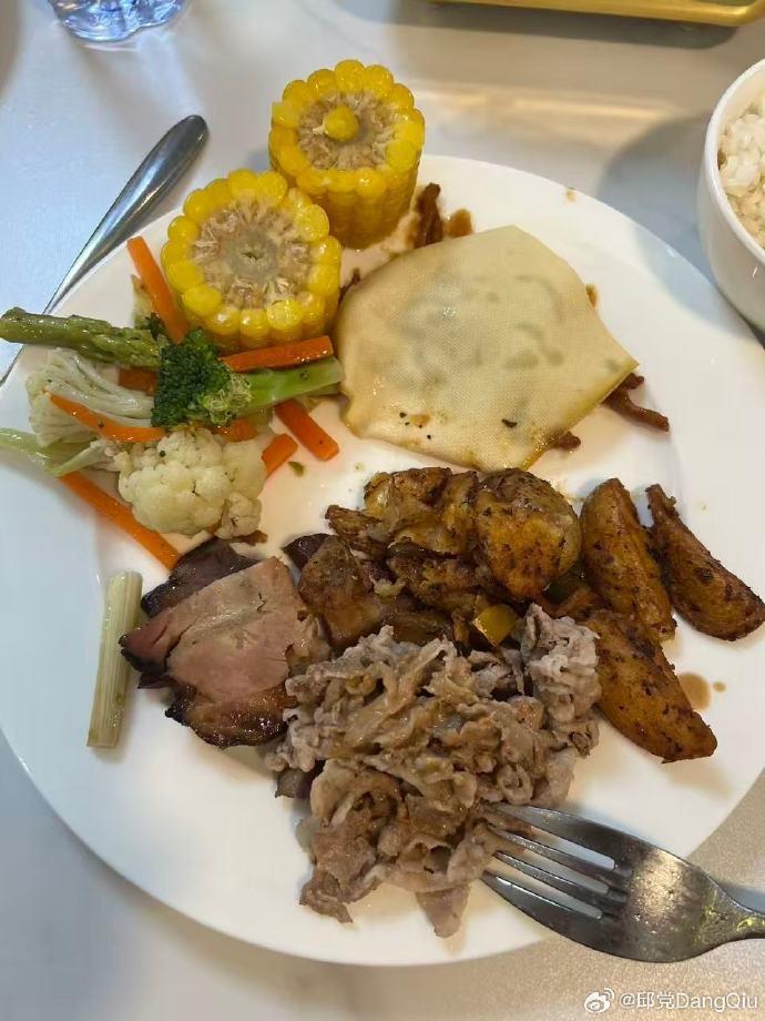 邱党更新社媒晒出丰盛餐食:喜欢中餐和喜欢西餐的都要沉默了因为一香一个不吱声。还有酒店没有豆汁