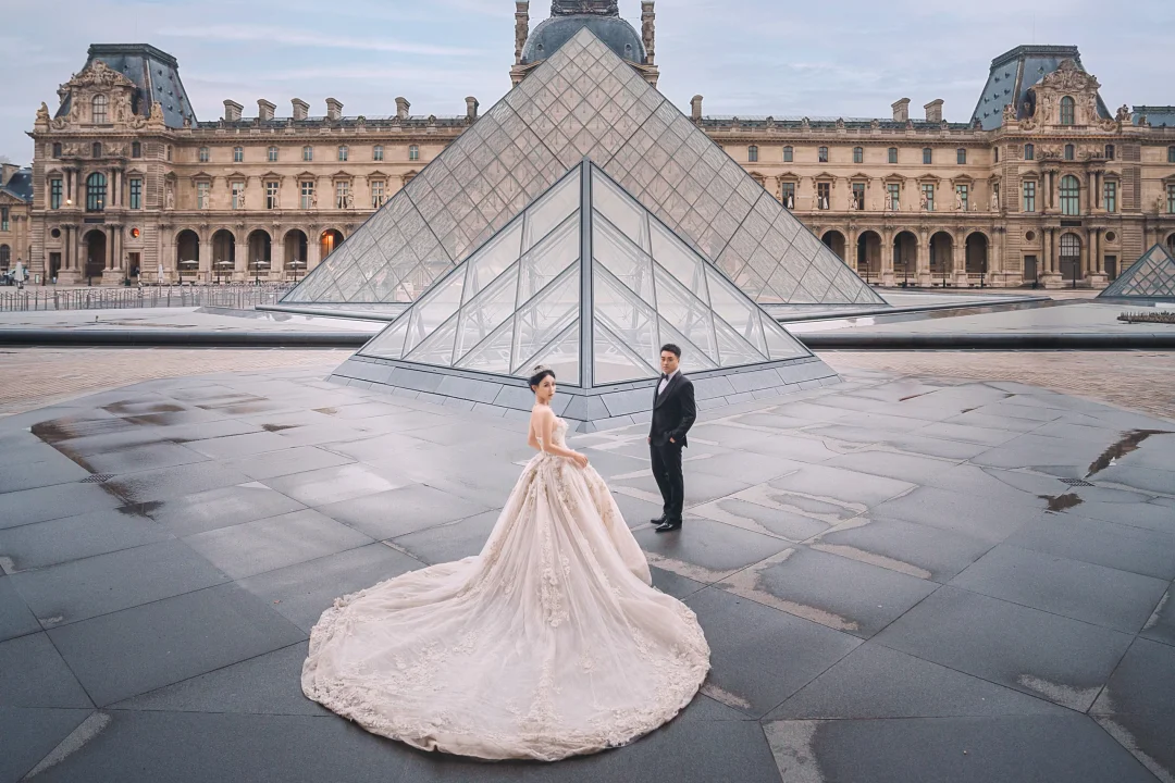 · 机位亮点: 贝聿铭设计的玻璃金字塔与古典宫殿的碰撞,场景极其宏大。