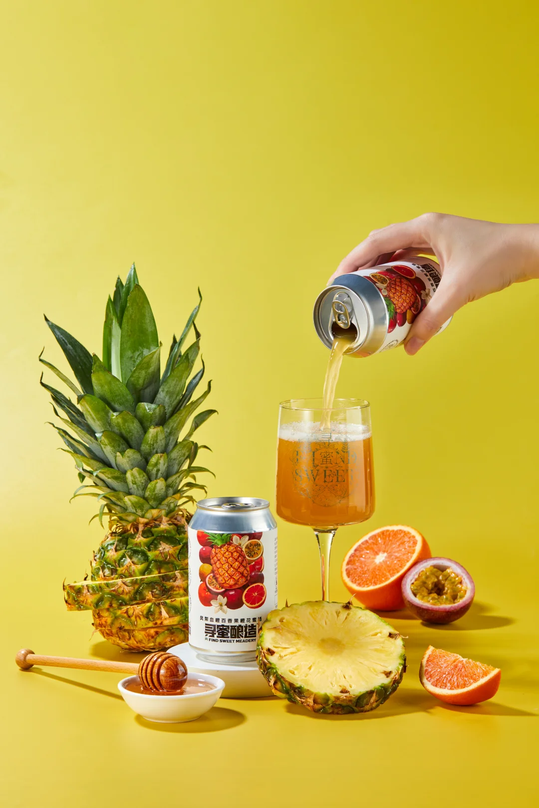 🍷 凤梨血橙百香果橙花蜜酒🍍🍊🍯:为了突出热带水果的奔放气息,特别选用橙花蜜来酿造,凤梨,血橙,百香果那热情的风味搭配上橙花蜜的花香,仿佛置身于鲜果丛林,Smoothie Style细腻的水果果绒带来思慕雪般的口感且酸甜平衡,一口下去,让热带岛屿的风情在喉间流淌。