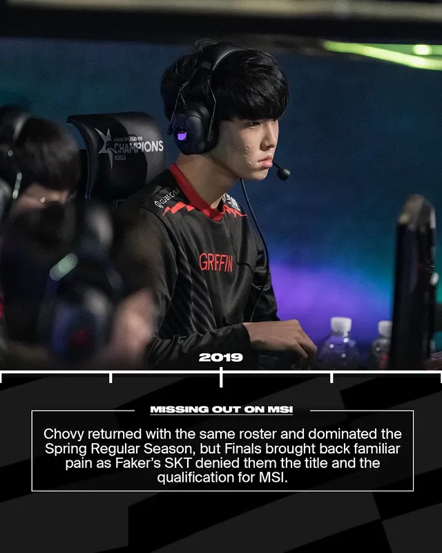 Chovy与原班人马卷土重来,在春季常规赛大杀四方,但在决赛中再次品尝失利的苦涩——Faker率领的SKT拒绝了他们的冠军梦与MSI门票。