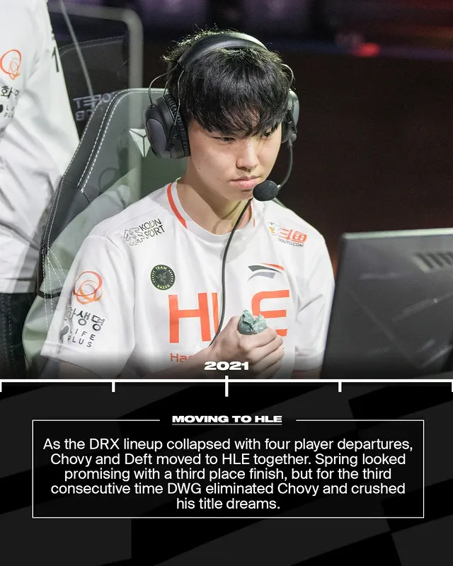 DRX队伍解体,四名选手离开,Chovy与Deft一同转投HLE。春季赛看似充满希望,打到第三名,但又是DWG将他们淘汰,连续第三次击碎Chovy的冠军梦。