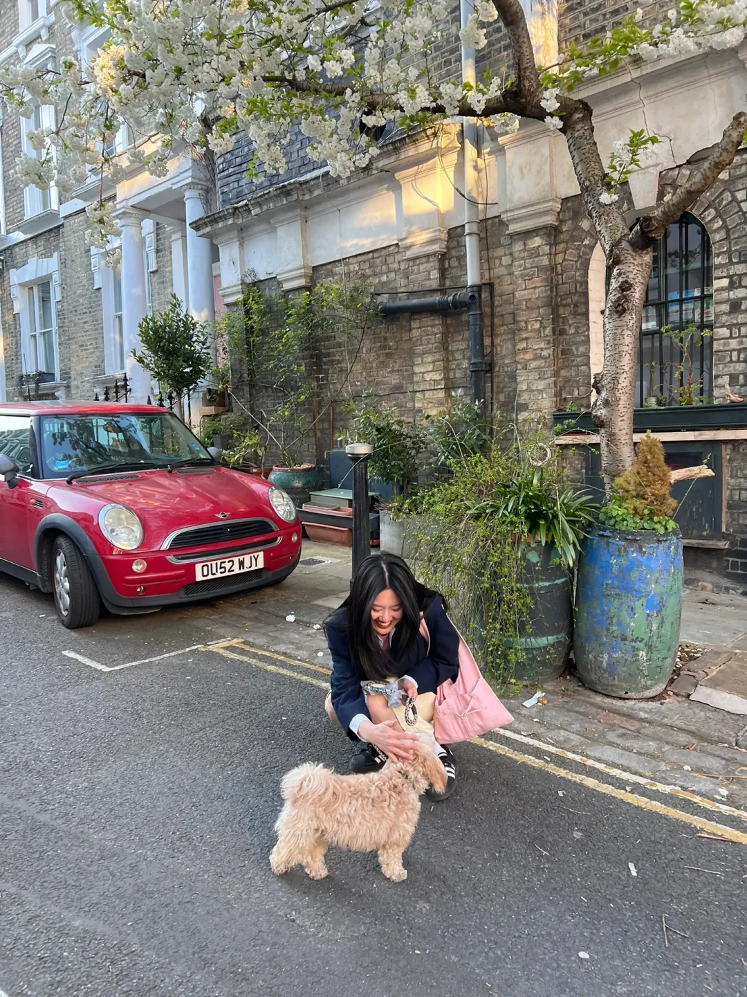 比起只是记录 更喜欢制造和捕捉浪漫 温度慢慢回升后这周除了忙着搬家 还在放晴的日子里看了樱花 躺在Primrose hill晒了太阳 想分享这周最开心的一件事是经过p3时 我站在那拍照的时候 路人把可爱的小狗牵过来让我一起合照啦!然后回家翻看照片 竟然发现身后红色的小车上面写着我的名字!惊呼 一切巧合的浪漫 让人意外又惊喜 🌸🦮👩🏻💼这是冒着粉红泡泡的一周 忙里偷闲 知足常乐