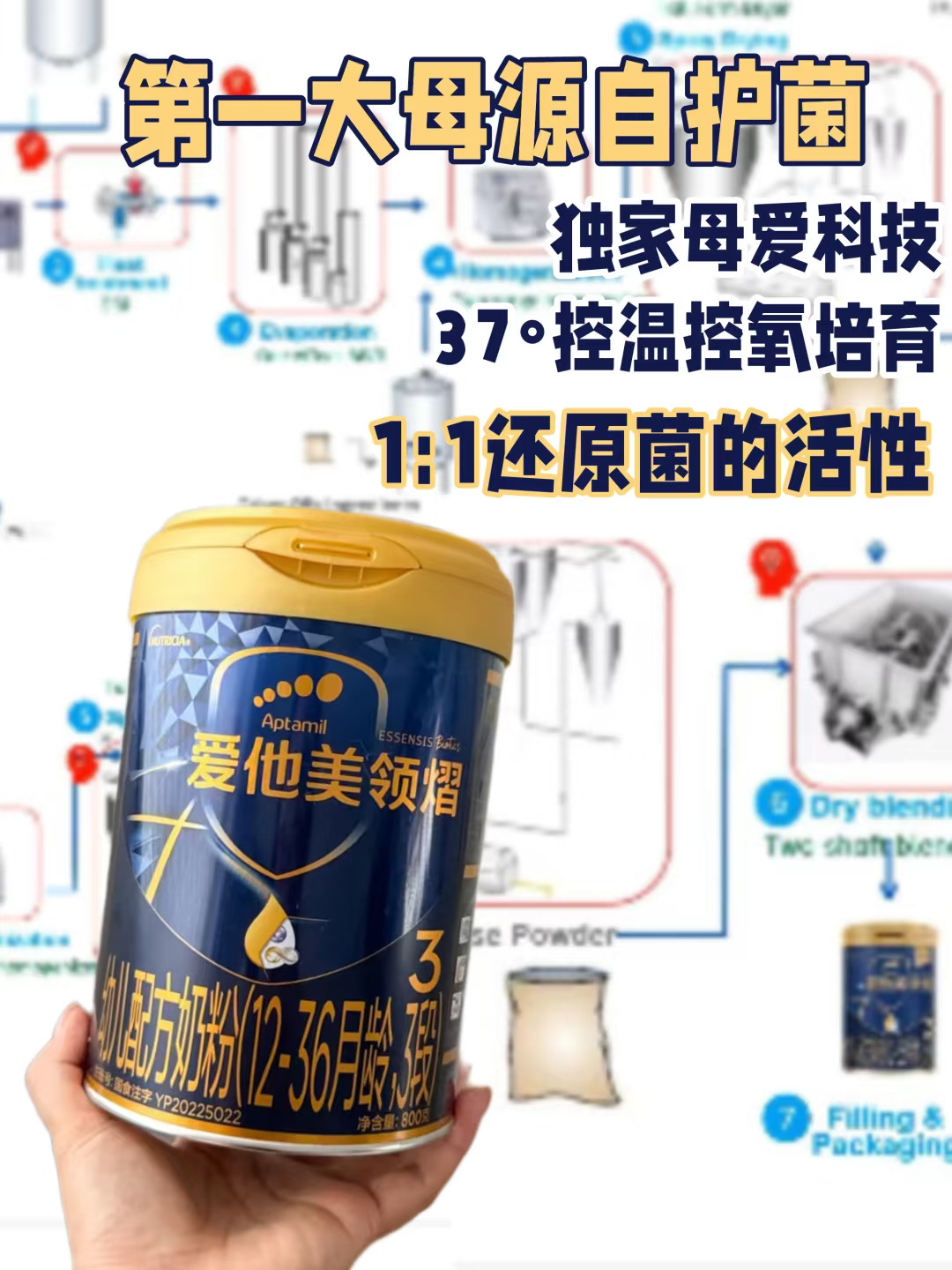 我早早就摸清了门道:半个世纪前科学家就发现,宝宝少生病的奥秘,藏在肚肚里的母源自护菌 M-16V 中。老三现在喝的爱他美顶配领熠,就是我对比超多款后选出的心头好: