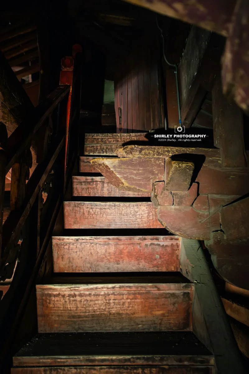 过去是五凤楼的登楼楼梯,用整棵桑木主干雕凿而成,按年轮推测树龄有500年,高度达到了7.13米。对于成材普遍矮小的桑木来说,如此巨大实属难得