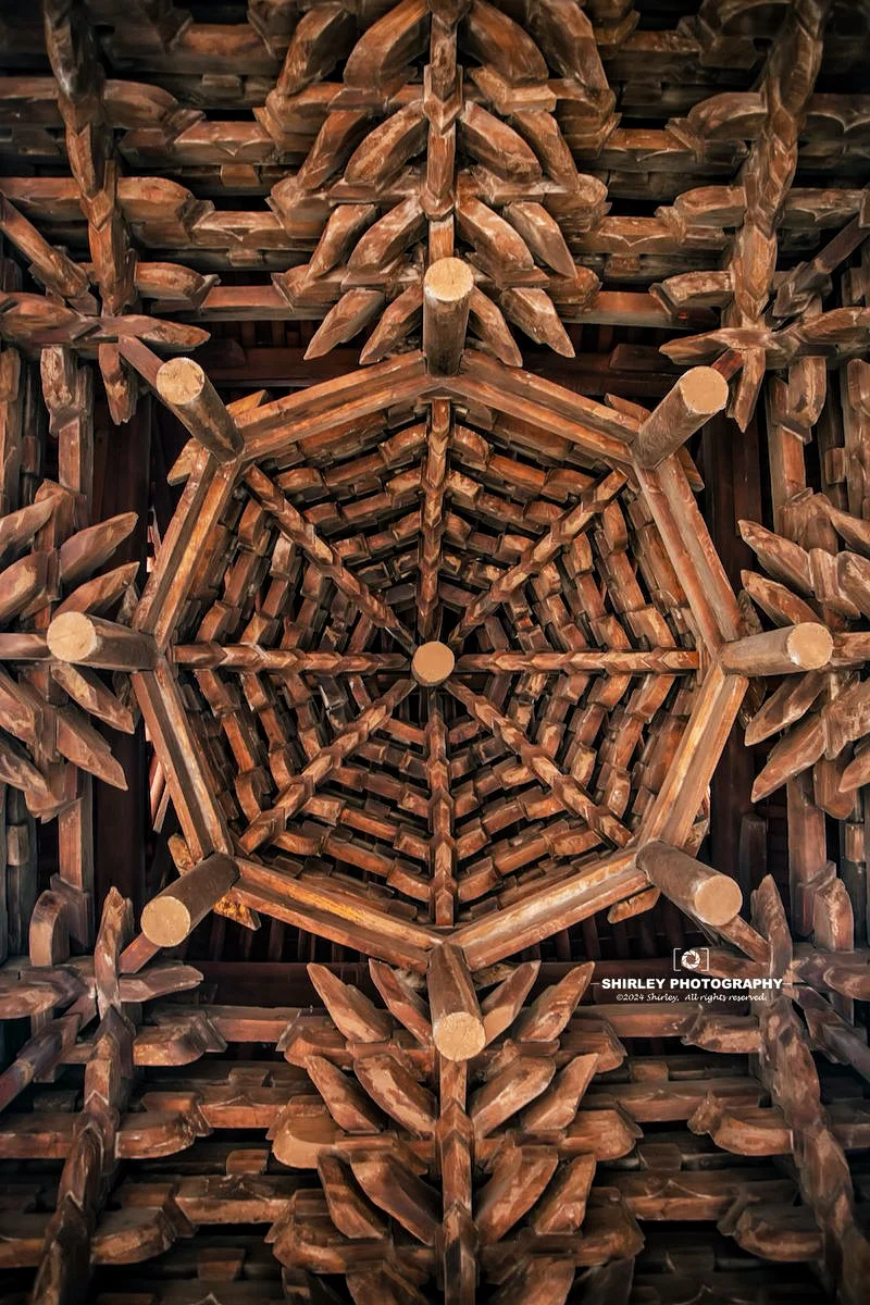 五凤楼顶部的八角藻井斗拱迭涩,垂莲吊挂,尽显小木作之精美