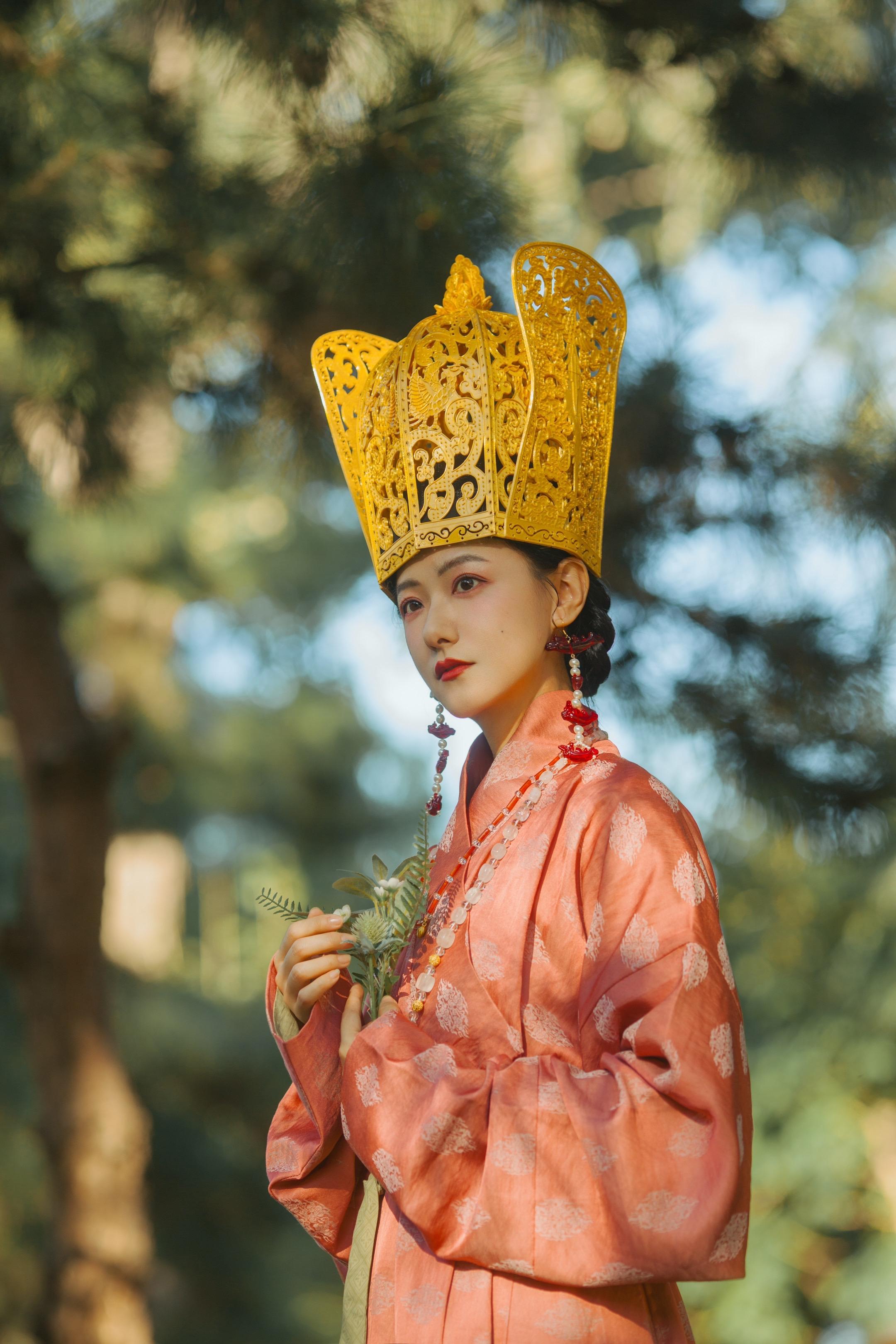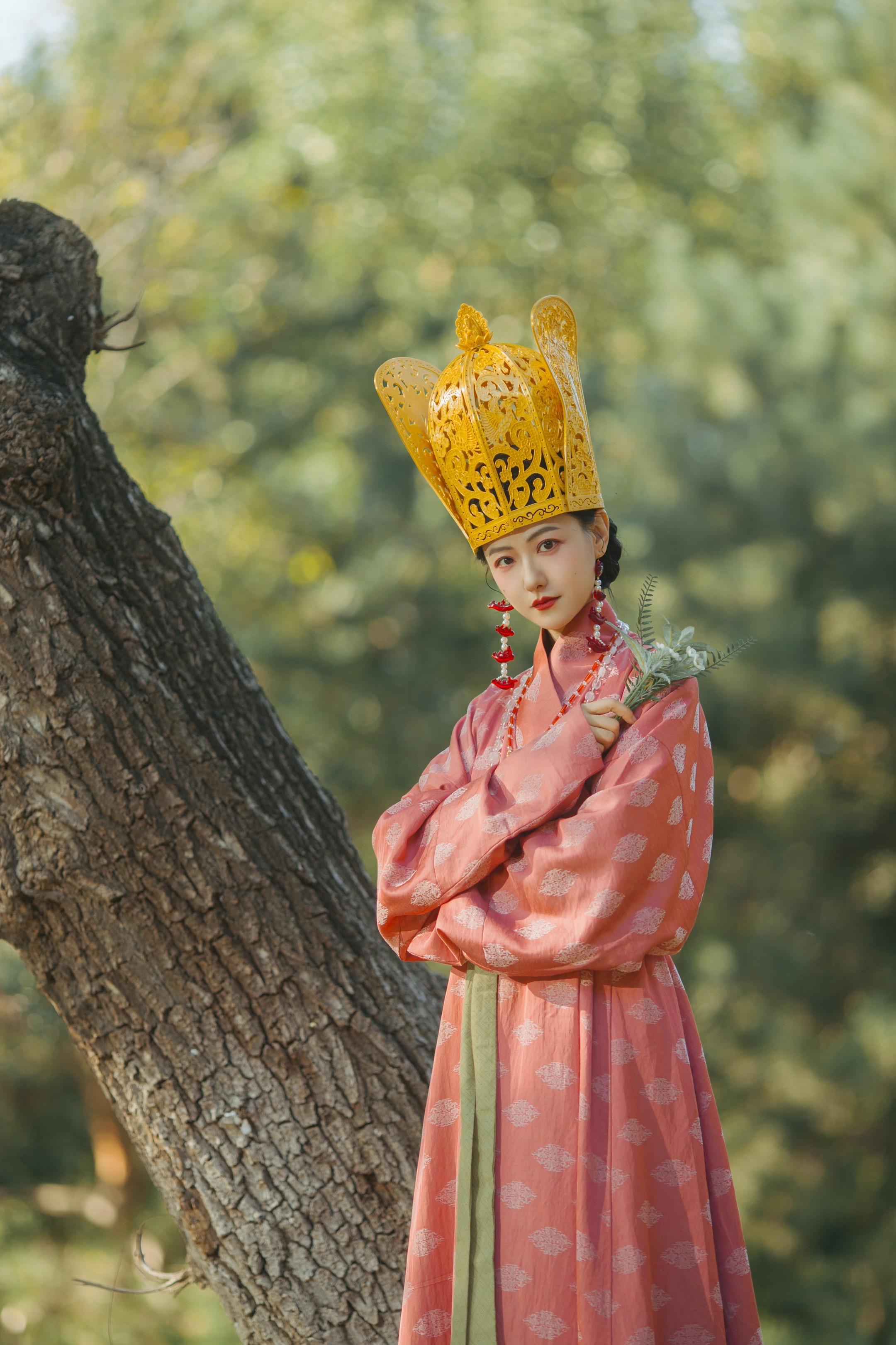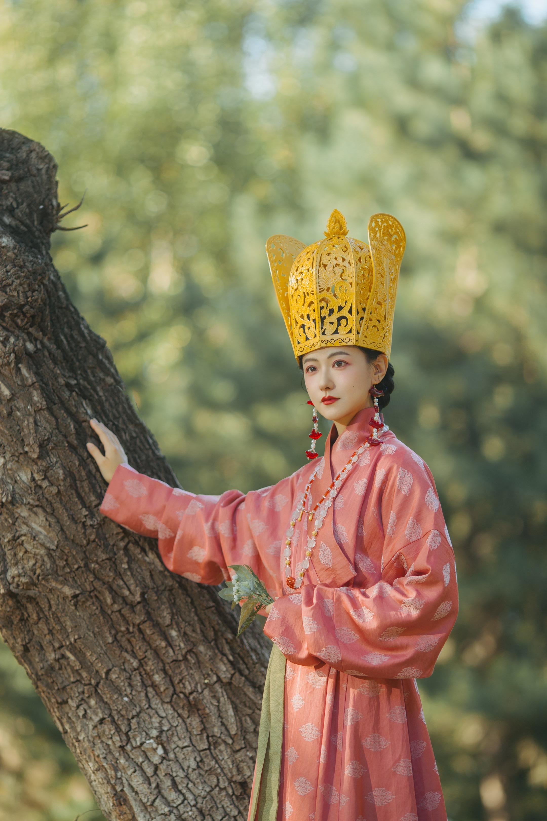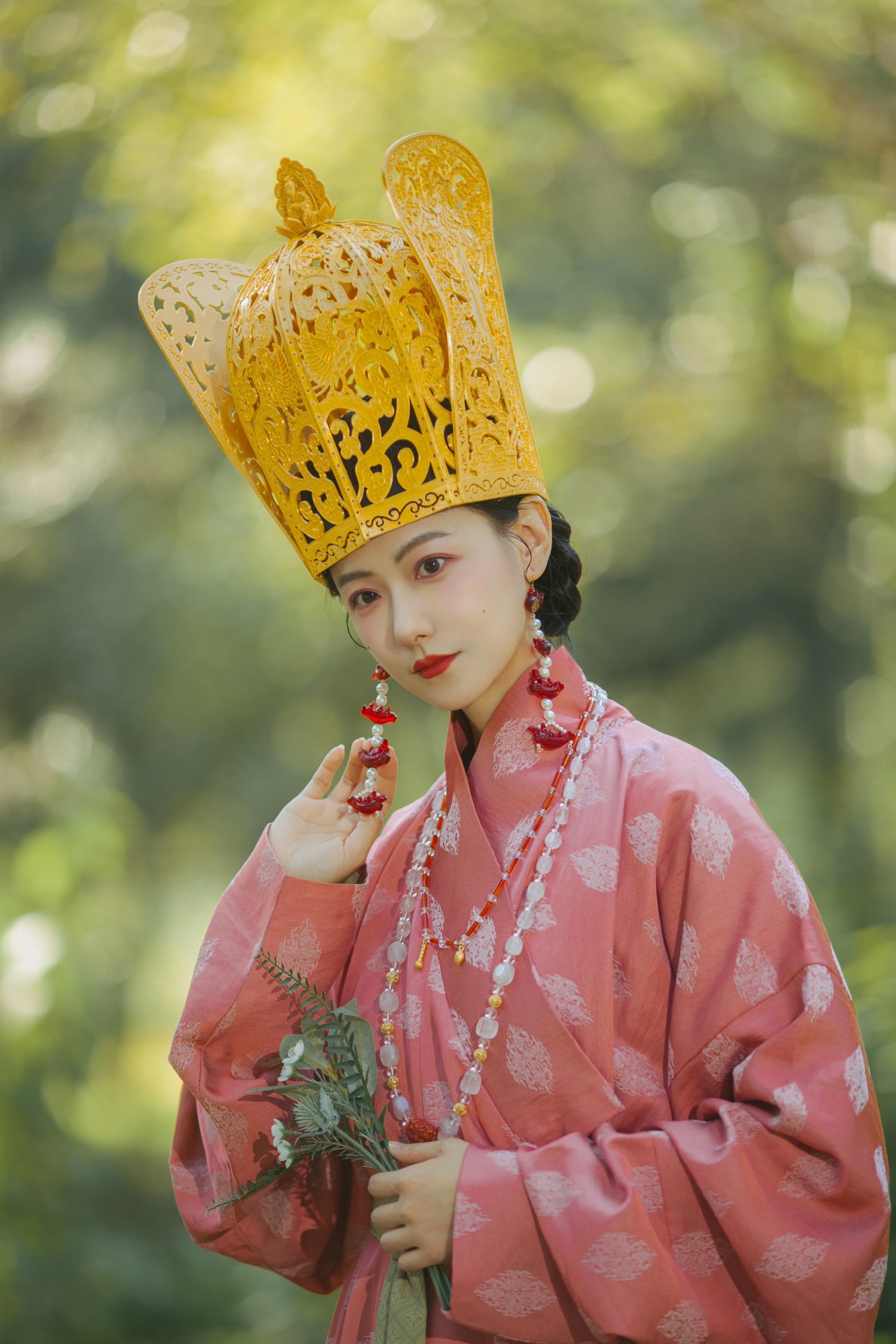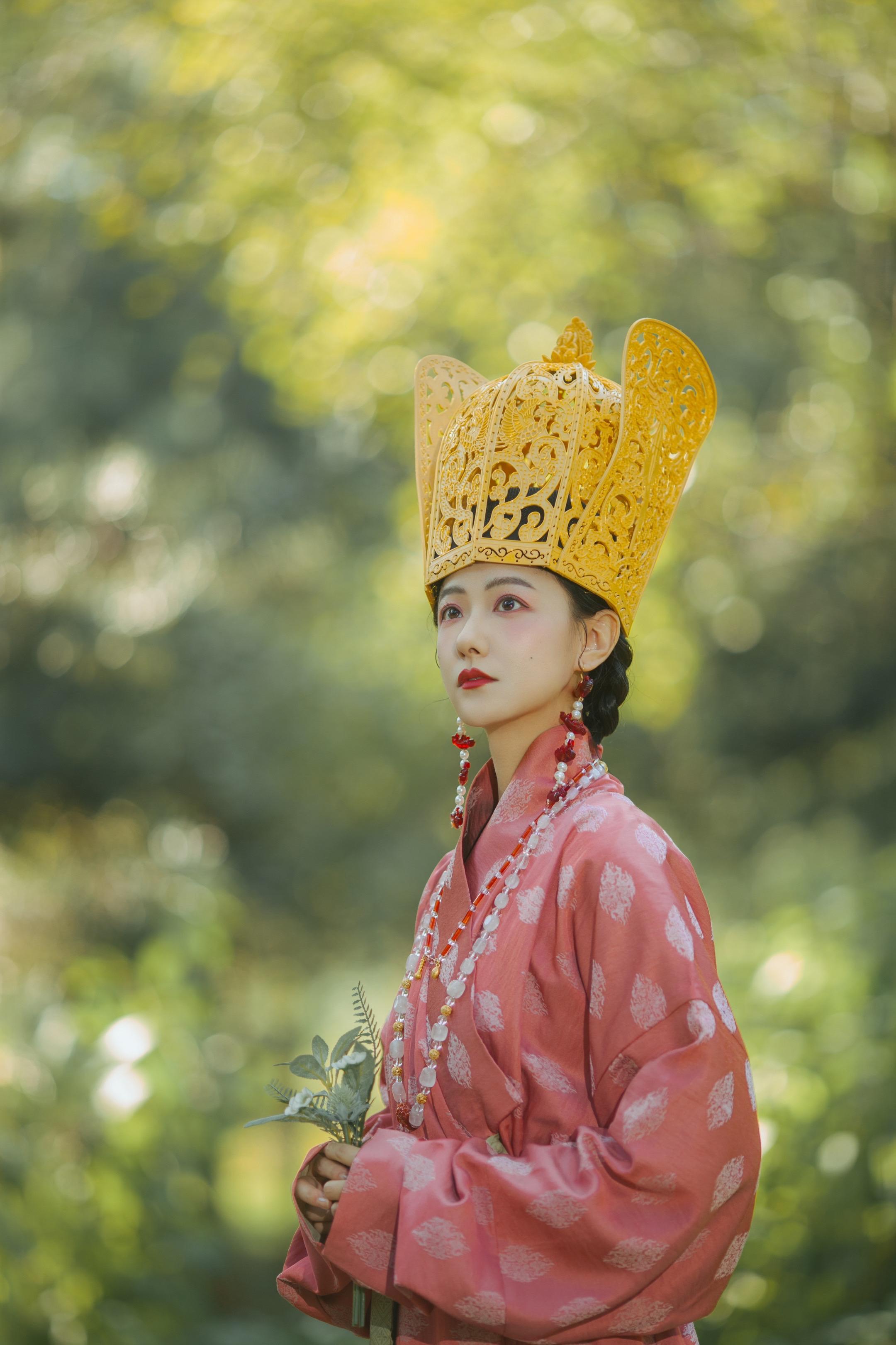 辽·高翅冠|公主的回眸。✨终于拍了复原陈国公主的高翅冠造型,拍摄前一天连夜串的耳环。还有好多小配件没有,以后再慢慢完善吧。