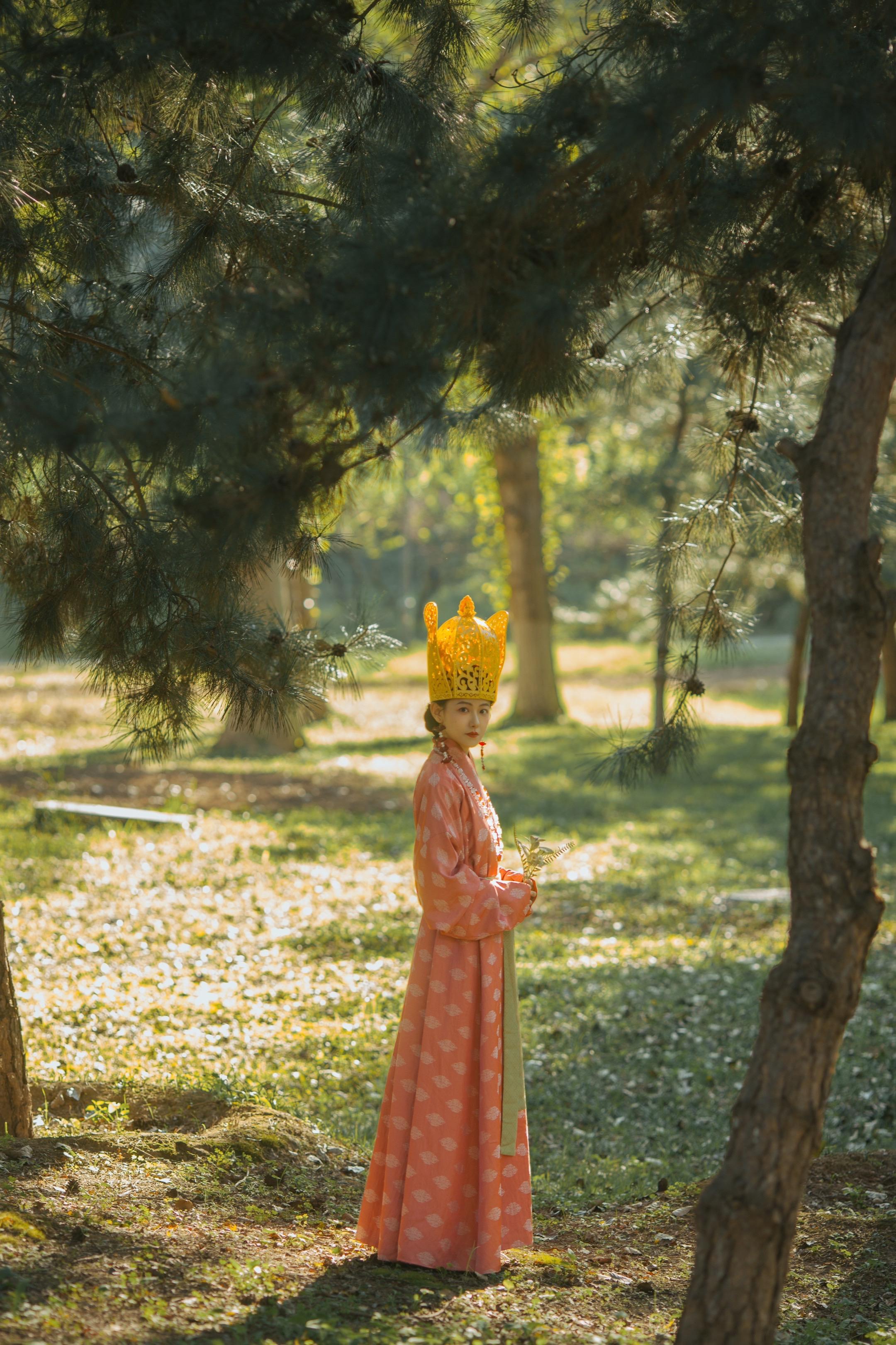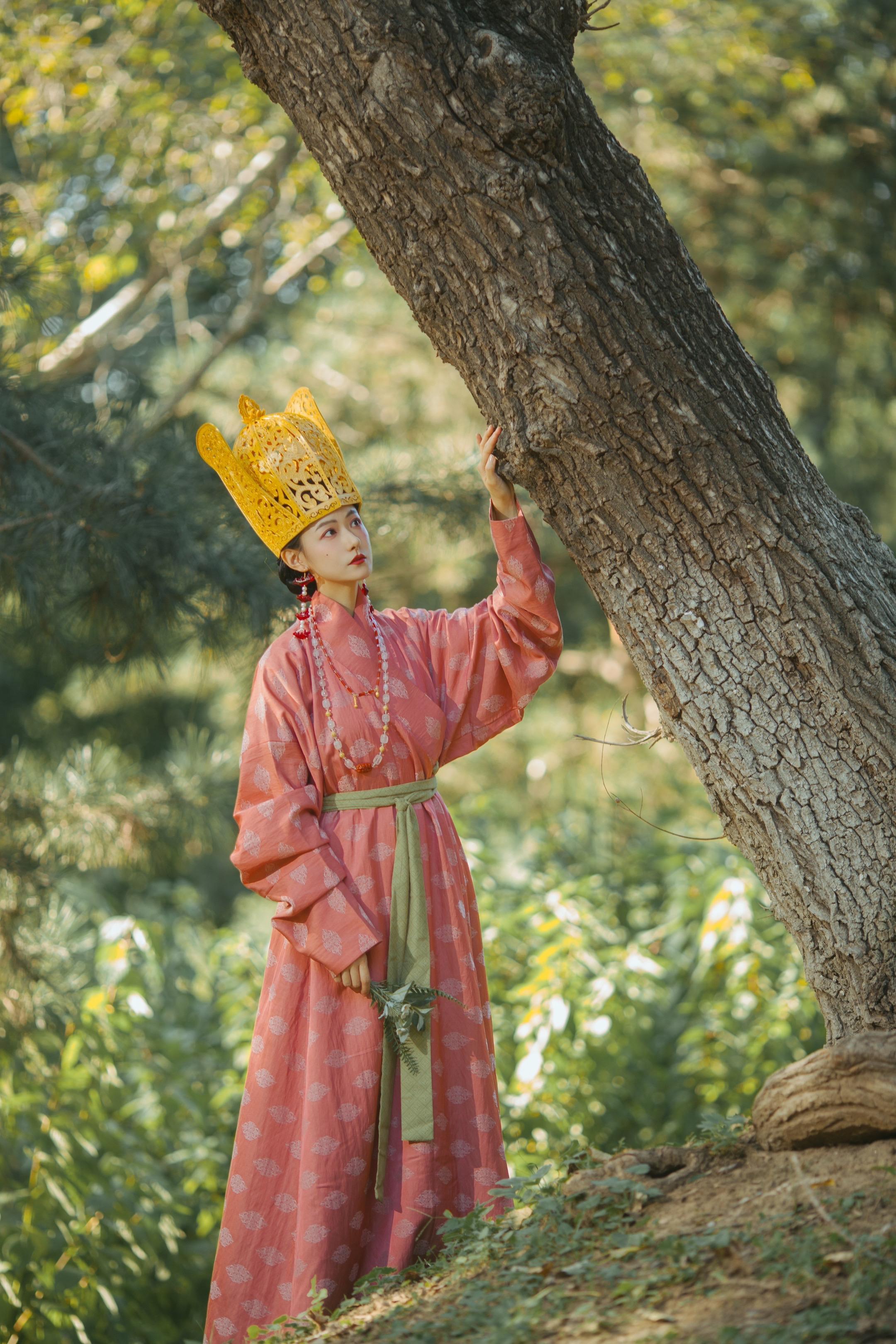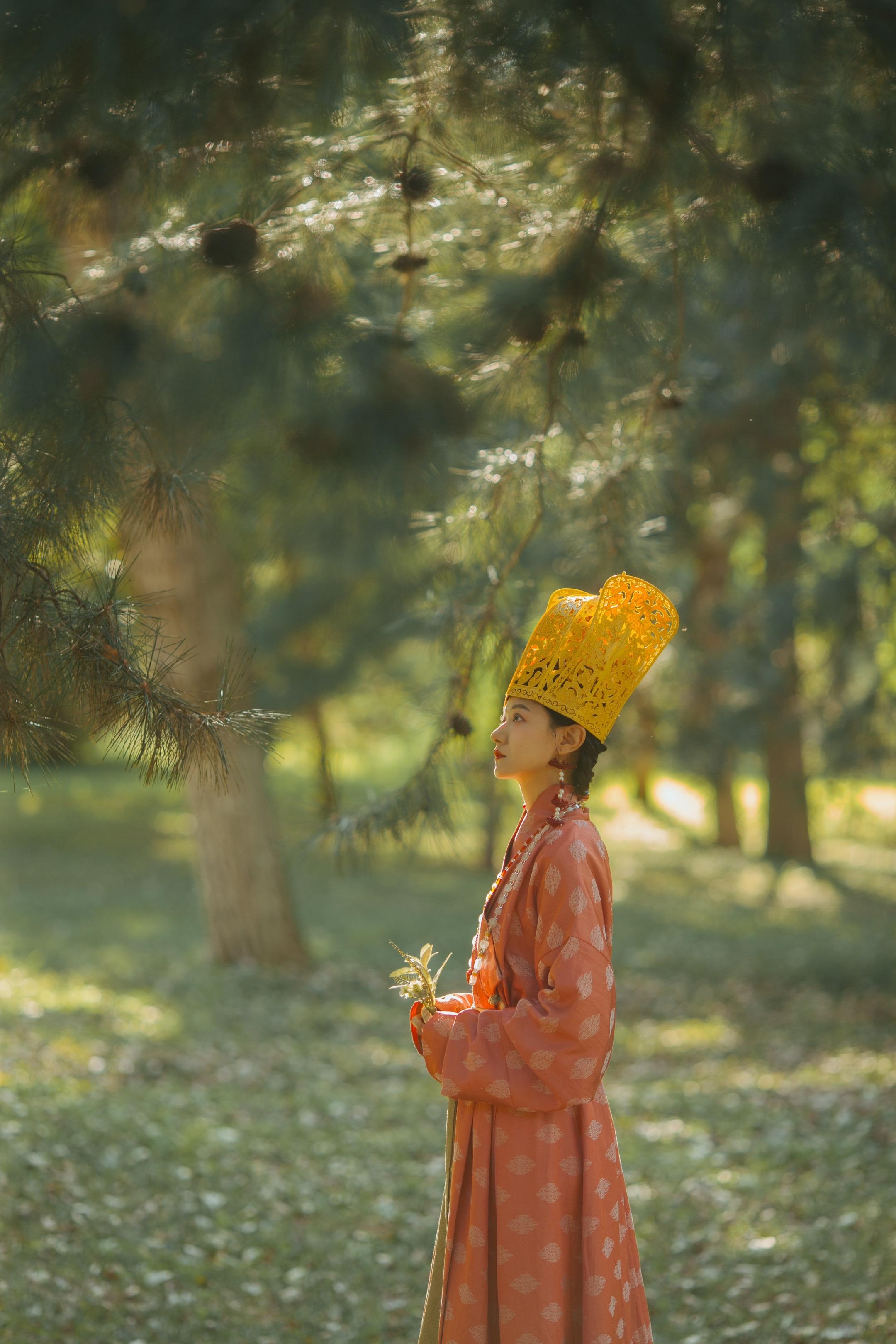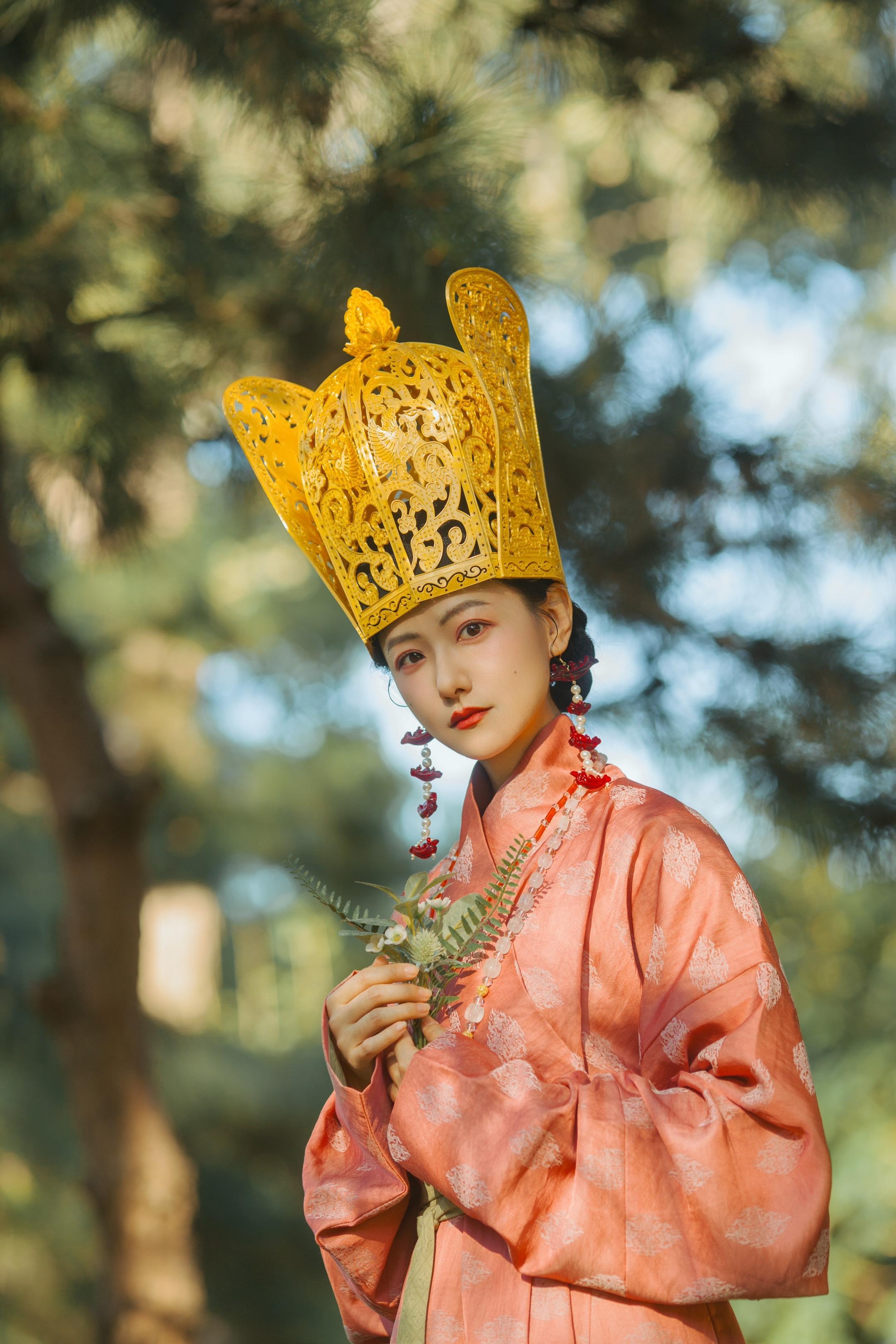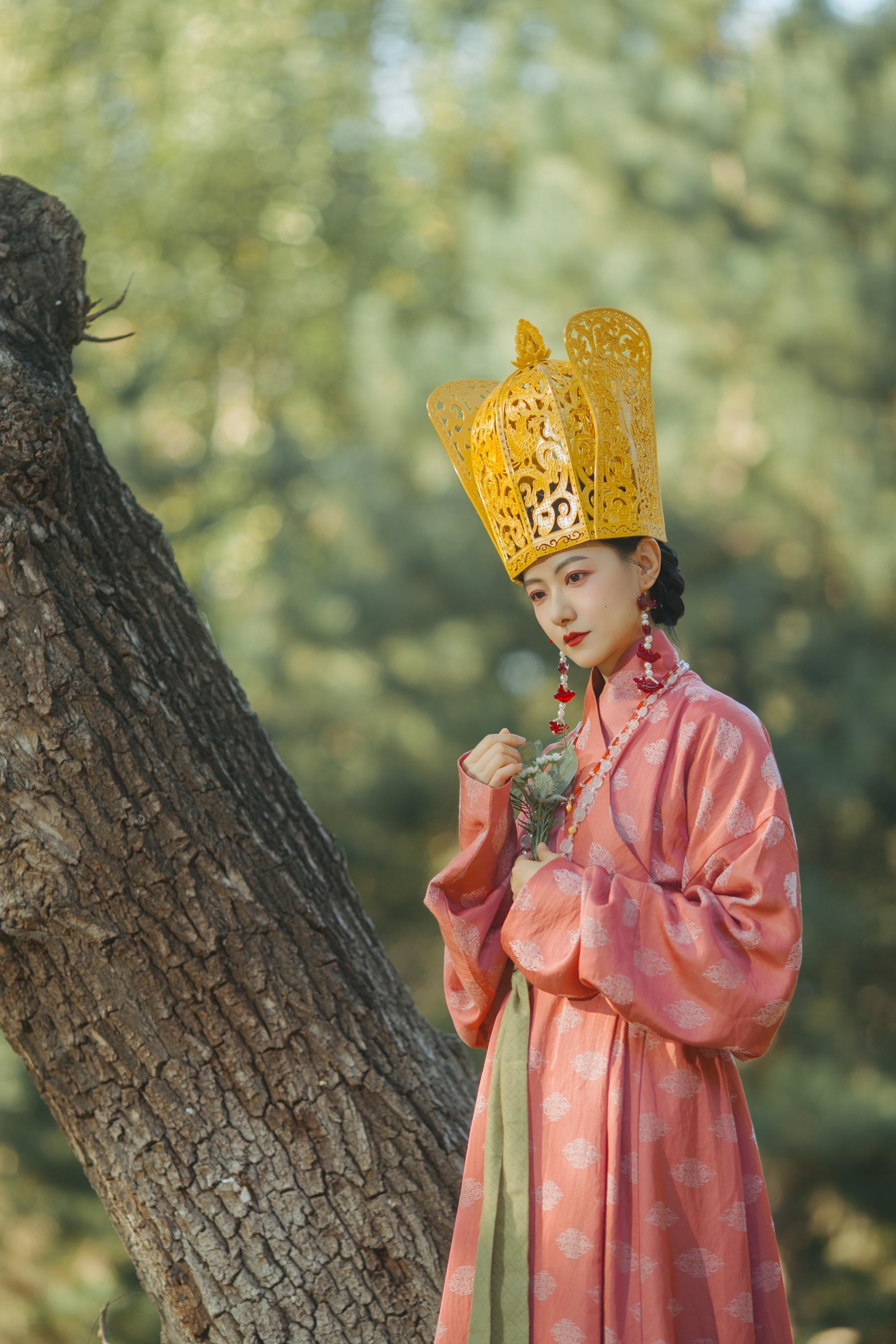 辽·高翅冠|公主的回眸。✨终于拍了复原陈国公主的高翅冠造型,拍摄前一天连夜串的耳环。还有好多小配件没有,以后再慢慢完善吧。