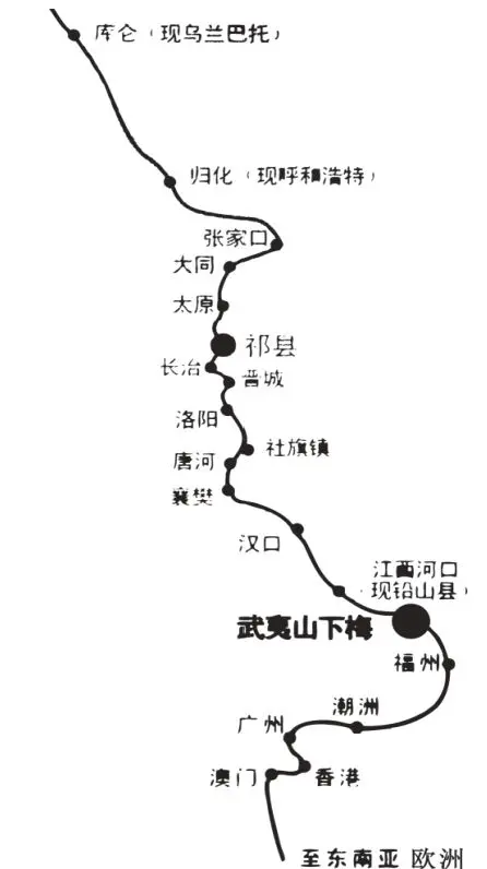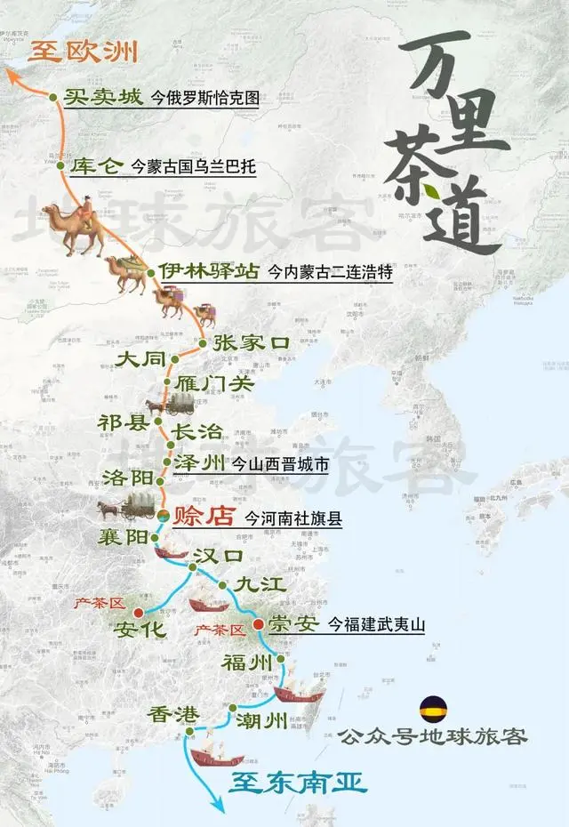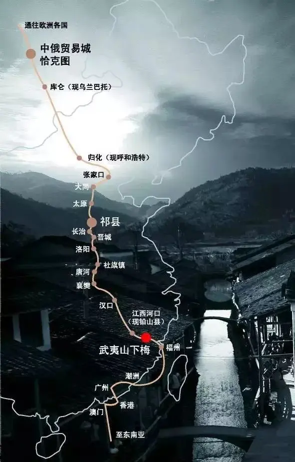 万里茶道草原路。万里茶道的起点是福建武夷山,终点是俄罗斯圣彼得堡,全长约1.3万公里,是17世纪至20世纪初连接中、蒙、俄三国的国际茶叶贸易通道。起点:福建武夷山(今武夷山市),以下梅村为核心集散地,依托水陆交通汇集茶叶。