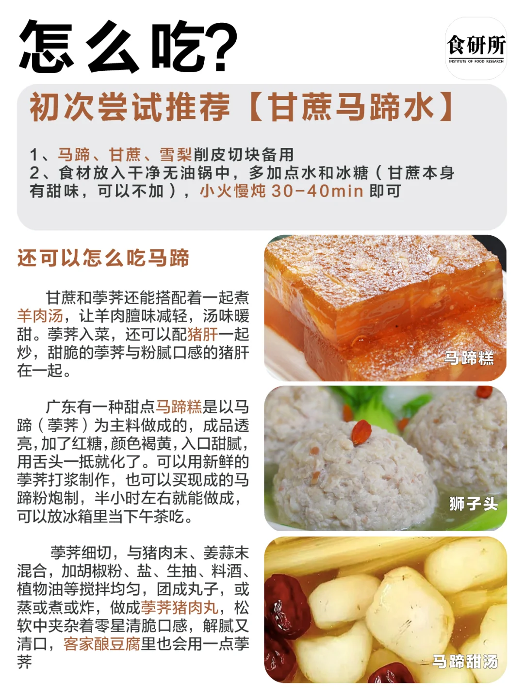 [黄色心形R]《本草纲目》中认为“荸荠能降火、補肺凉肝、消食化痰。地上茎有清热利尿作用”。