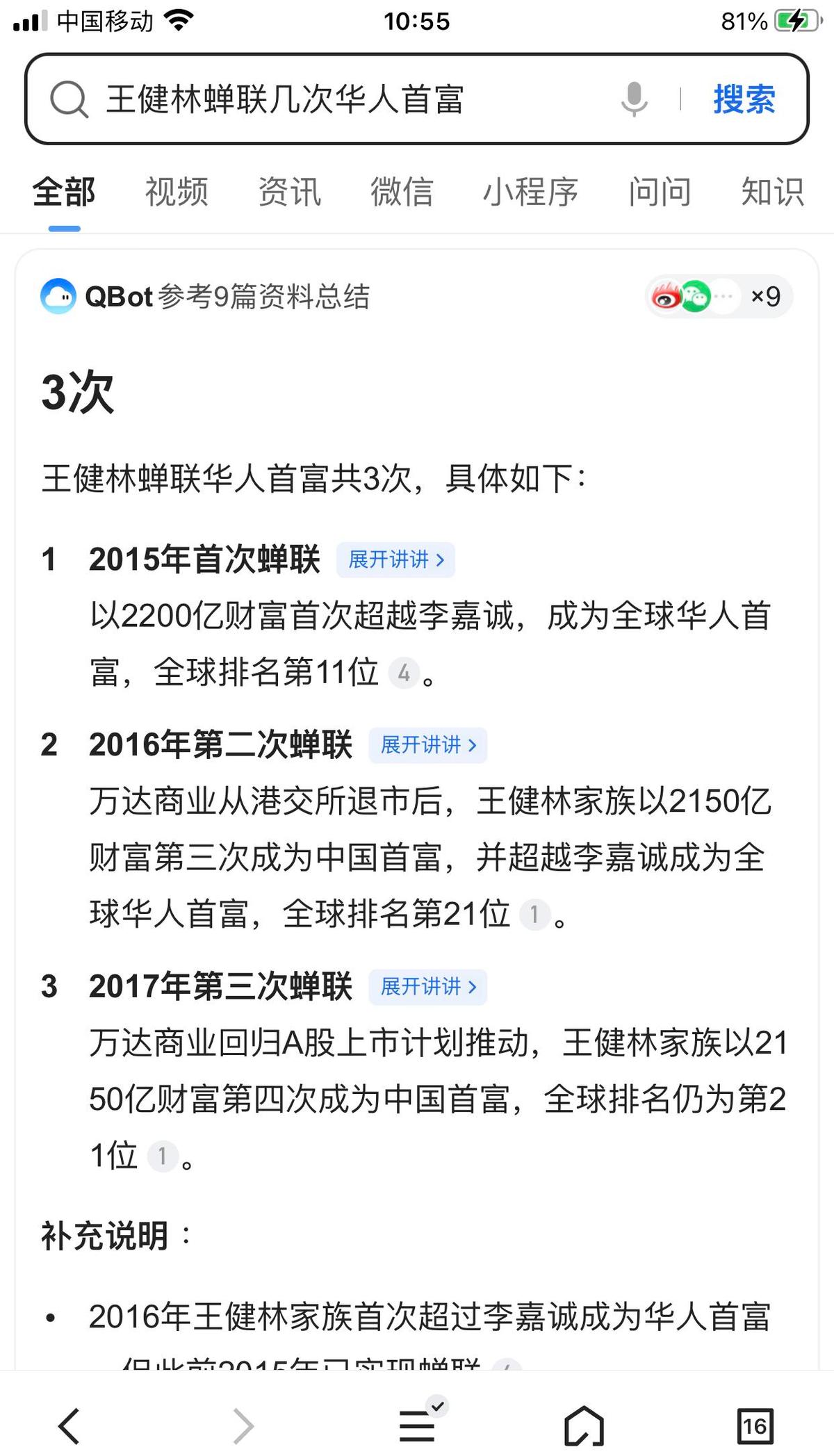 王健林没当过连续三年中国首富,也没在2025年被限制消费——因为2025年还没到。 这事儿听起来像段子,但真有人信了,还传得有鼻子有眼。 其实他2016年登顶过一次,之后就再没回去过。 不是他不行,是时代变了。 地产的黄金时代收尾时,他选择砍掉酒店、文旅、影视这些重资产,转身做轻运营,把万达商管的股权卖给新加坡基金和腾讯,换回的是现金流和生存空间。2023年底,法院解除对他个人的消费限制,不是因为谁网开一面,而是债务重组真谈成了,钱还上了。 他没躲,也没喊冤,只是低调出现在清华论坛,捐了一亿做教育基金。 有人觉得这是“退隐”,我看是清醒。 真正的企业家不是靠热搜活着的,是靠能不能在风停之后,还站得住。 现在中国富豪榜前十,清一色是科技和消费赛道的,地产老板连前二十都挤不进去。 这不是王健林一个人的失败,是一整个模式的退场。 他没输在能力,输在了时代节奏。 但能主动瘦身、转身、上市、还债,还能在公众视野里消失几年后,不靠炒作、不靠儿子带流量,靠一句“我们不是在退,是在进化”重新赢得尊重,这比当年坐上首富宝座更难得。 你见过哪个富豪,能在负债九成时,不靠卖房卖车,靠改商业模式活过来? 他不是被击倒的,是自己拆了旧船,造了新船。