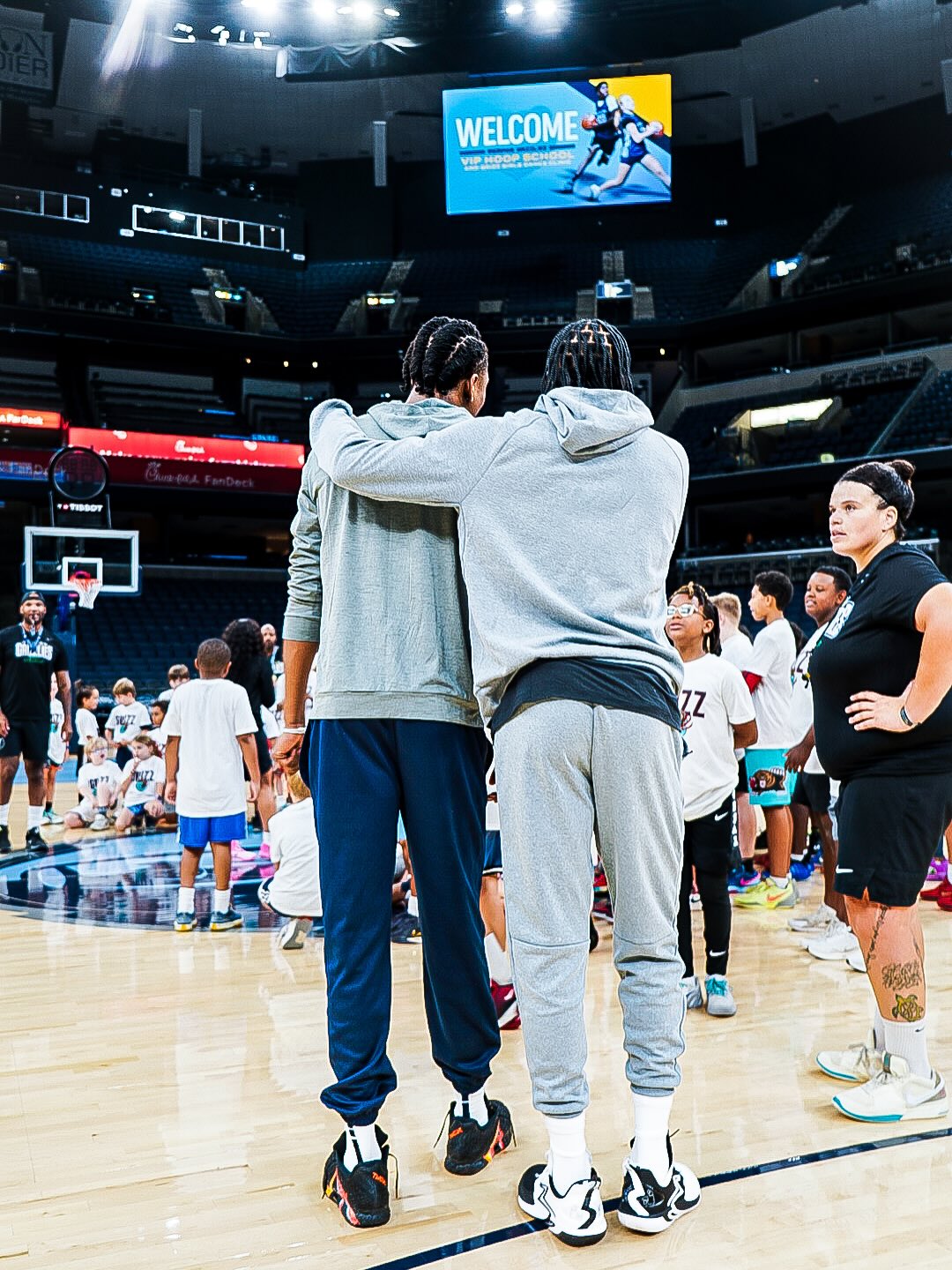 虎扑09月29日讯灰熊官方更新Ins,晒出一组灰熊球员肯塔维厄斯-考德威尔-波普和格雷格-杰克逊二世执导小球员的照片与球迷分享。