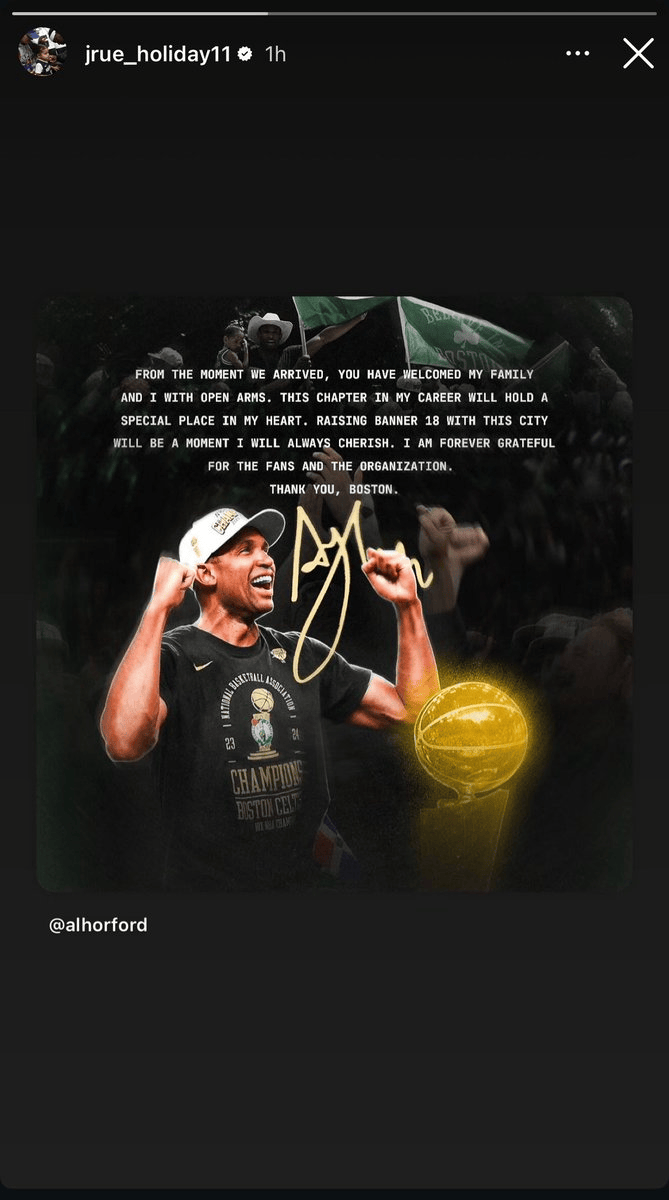 随后,开拓者球员朱-霍勒迪在Ins上转发霍福德告别的动态。