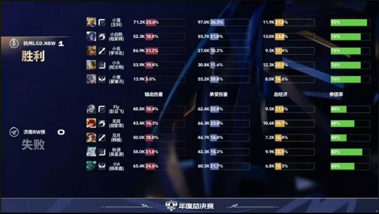 第一局:杭州LGD.NBW1-0济南RW侠