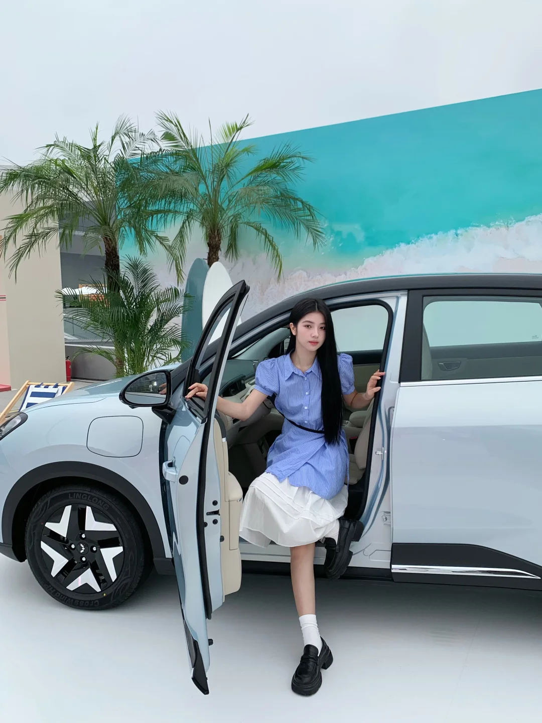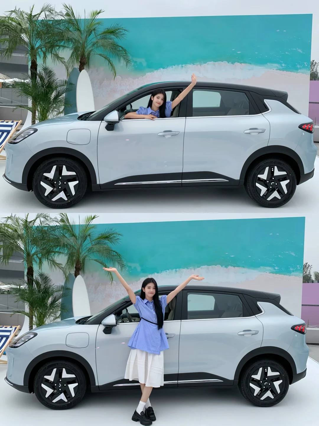 颜色独特又耐看 奶fufu的配色 车身采用幻彩车漆 阳光下泛着细腻珠光