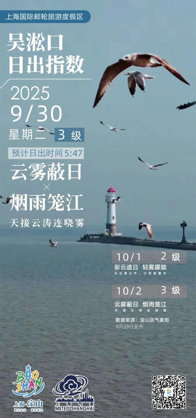 [吴淞口日出指数]9月30日3级云雾蔽日×烟雨笼江