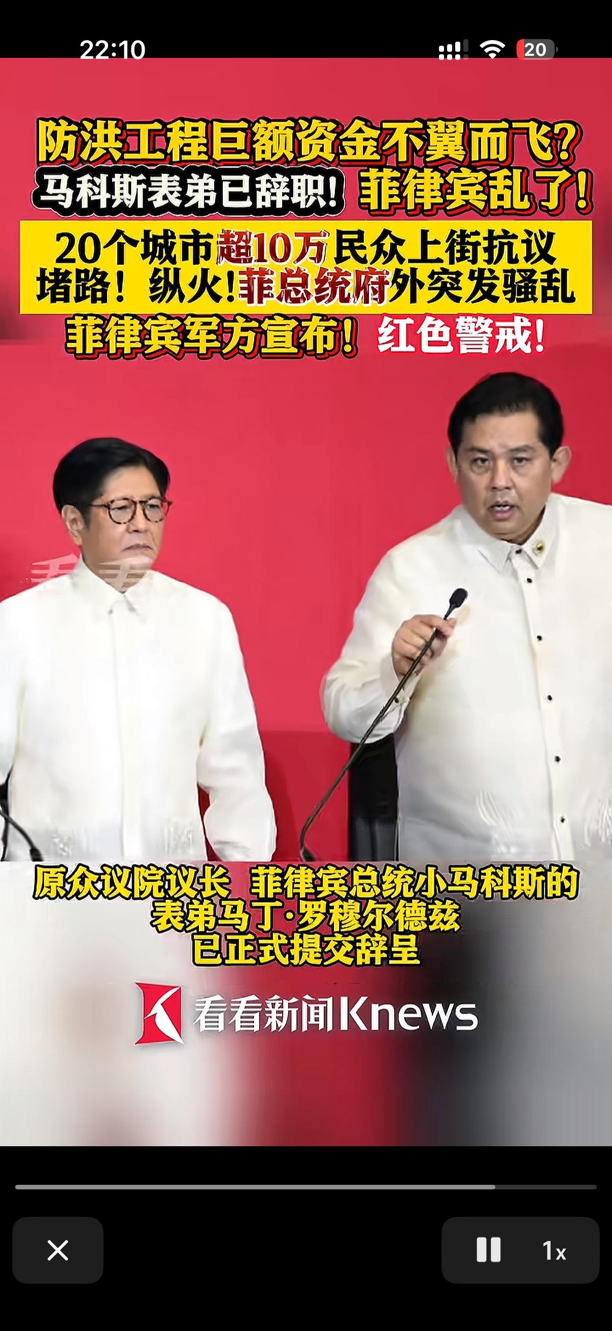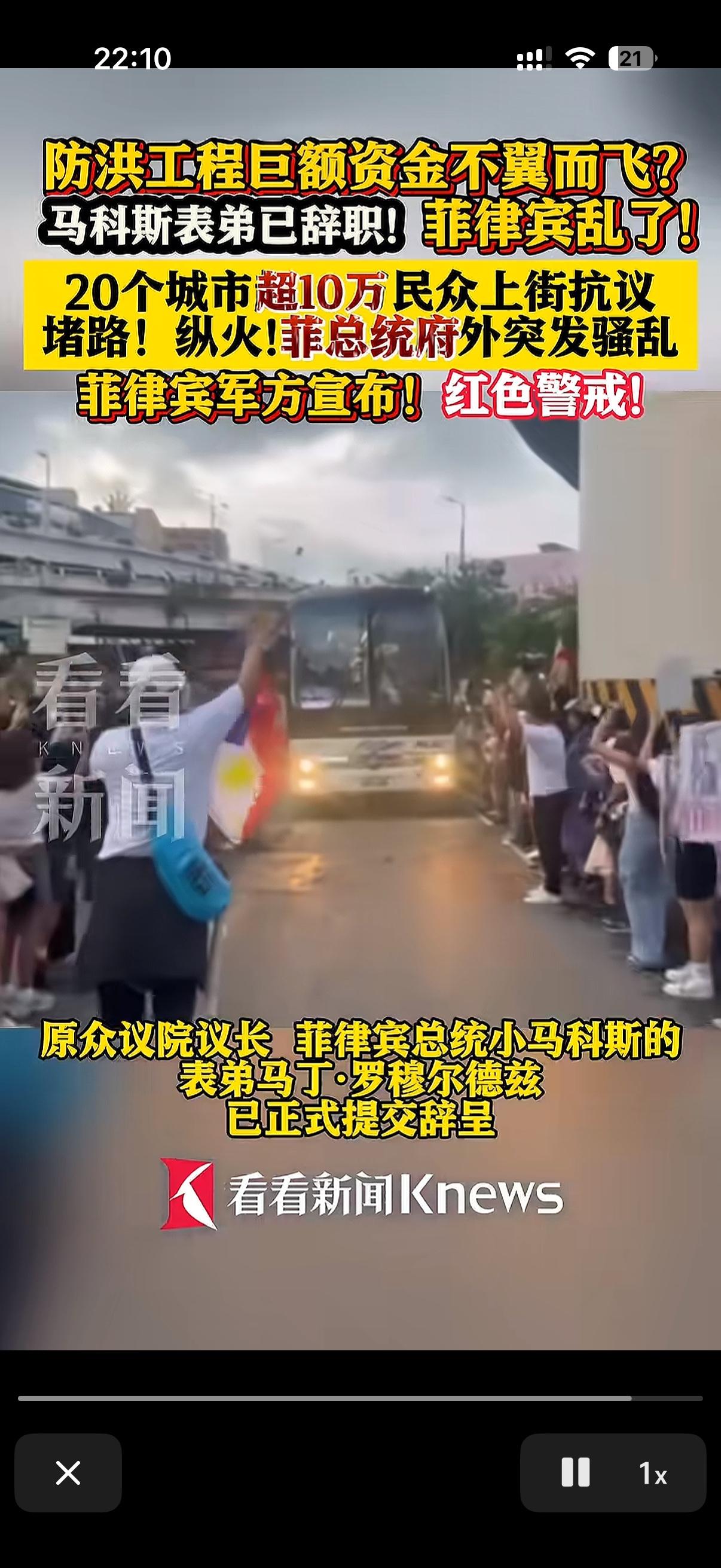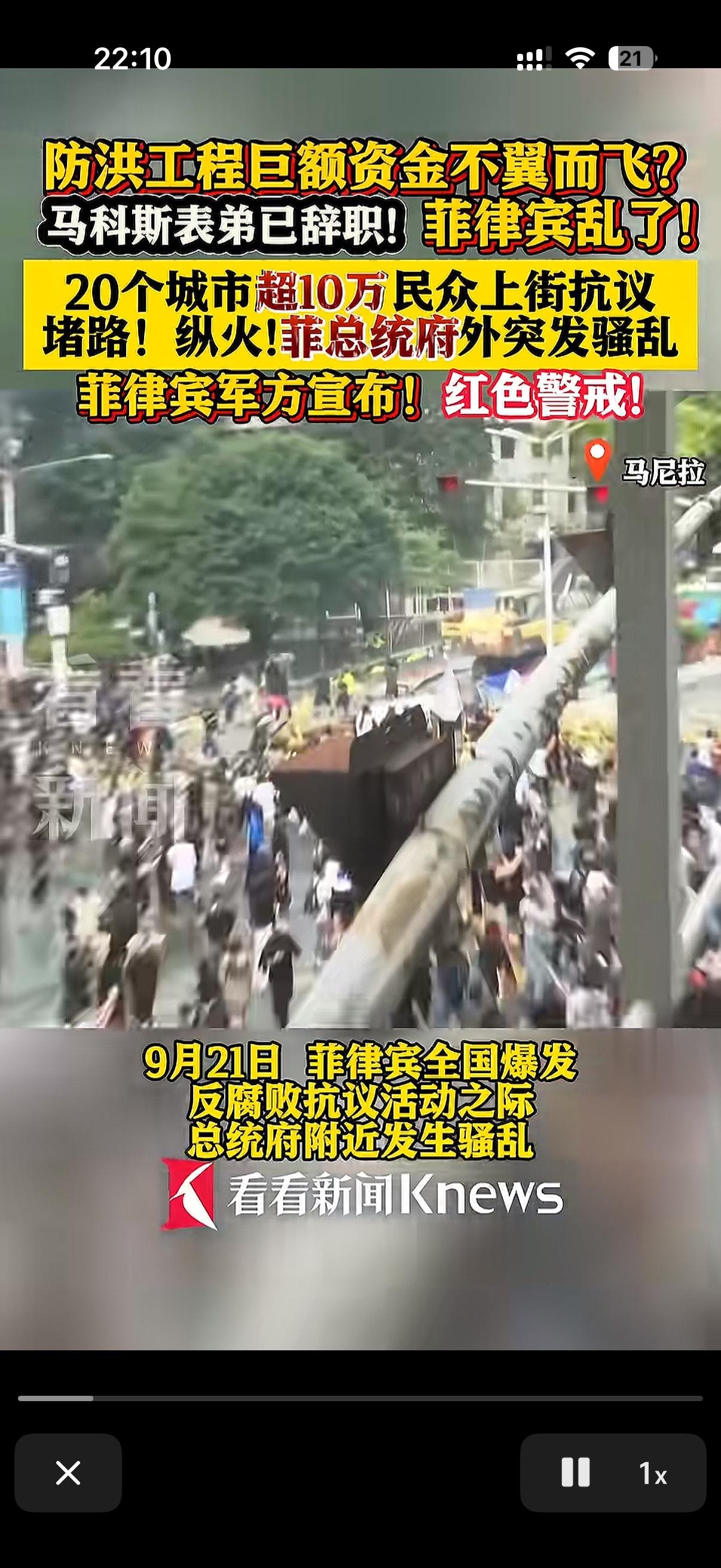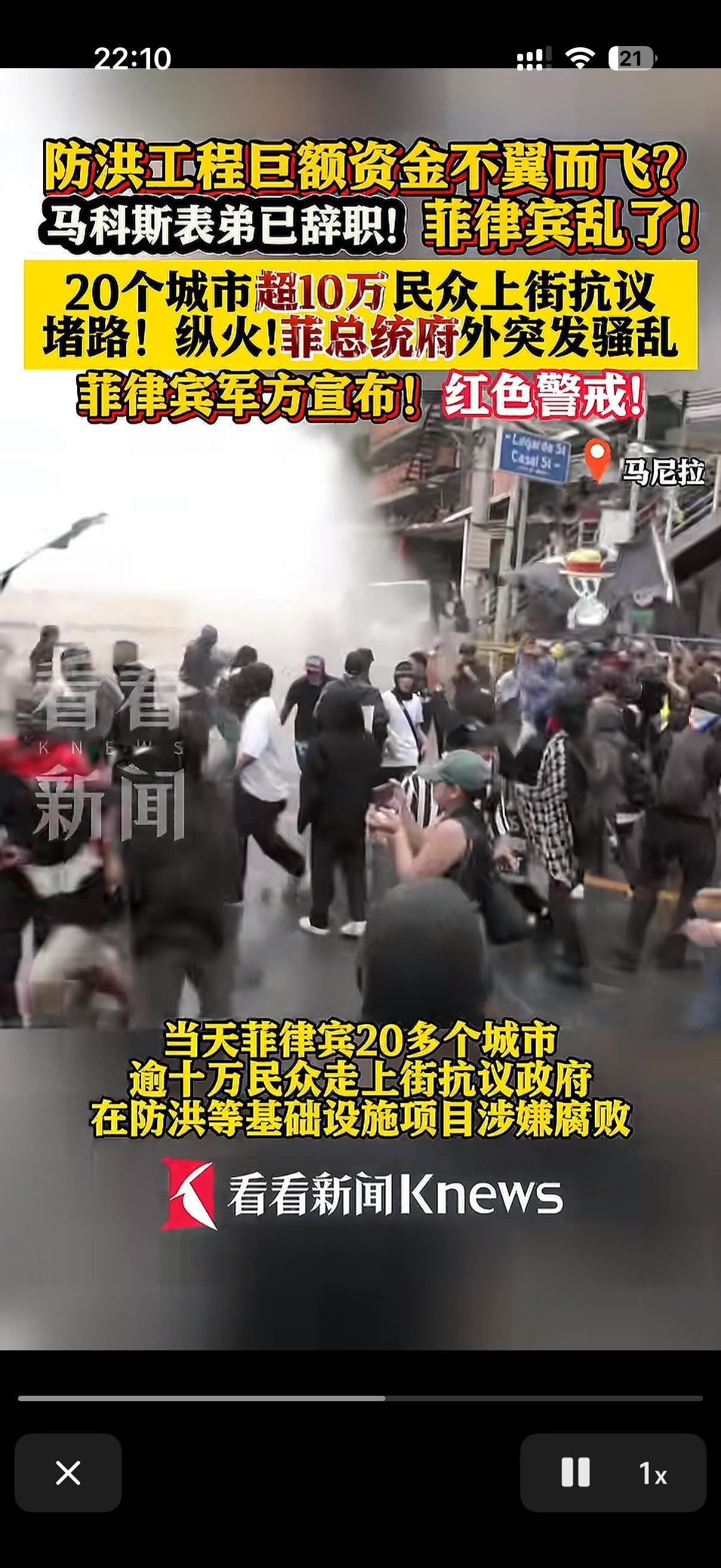 菲律宾爆发大规模的游行!主要就是反腐败抗议! 这一次是因为菲律宾的巨额防洪工程款不翼而飞了! 要知道当初小马科思就是以贪污腐败来攻击菲律宾前总统杜特尔特的! 现在菲律宾军方已经宣布红色警戒! 因为这次防洪工程款不翼而飞事件。小马科斯的表弟引咎辞职!菲律宾爆乱 菲律宾 菲律宾动态
