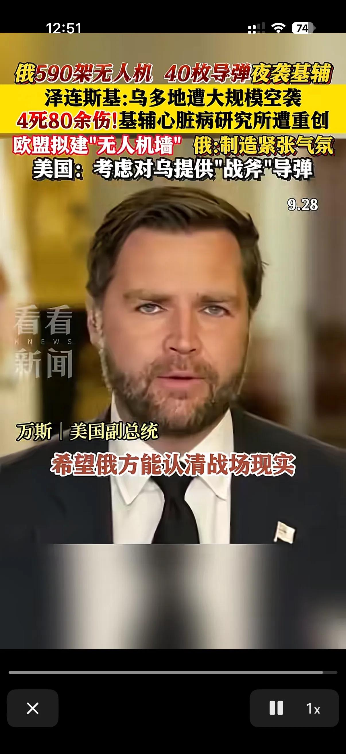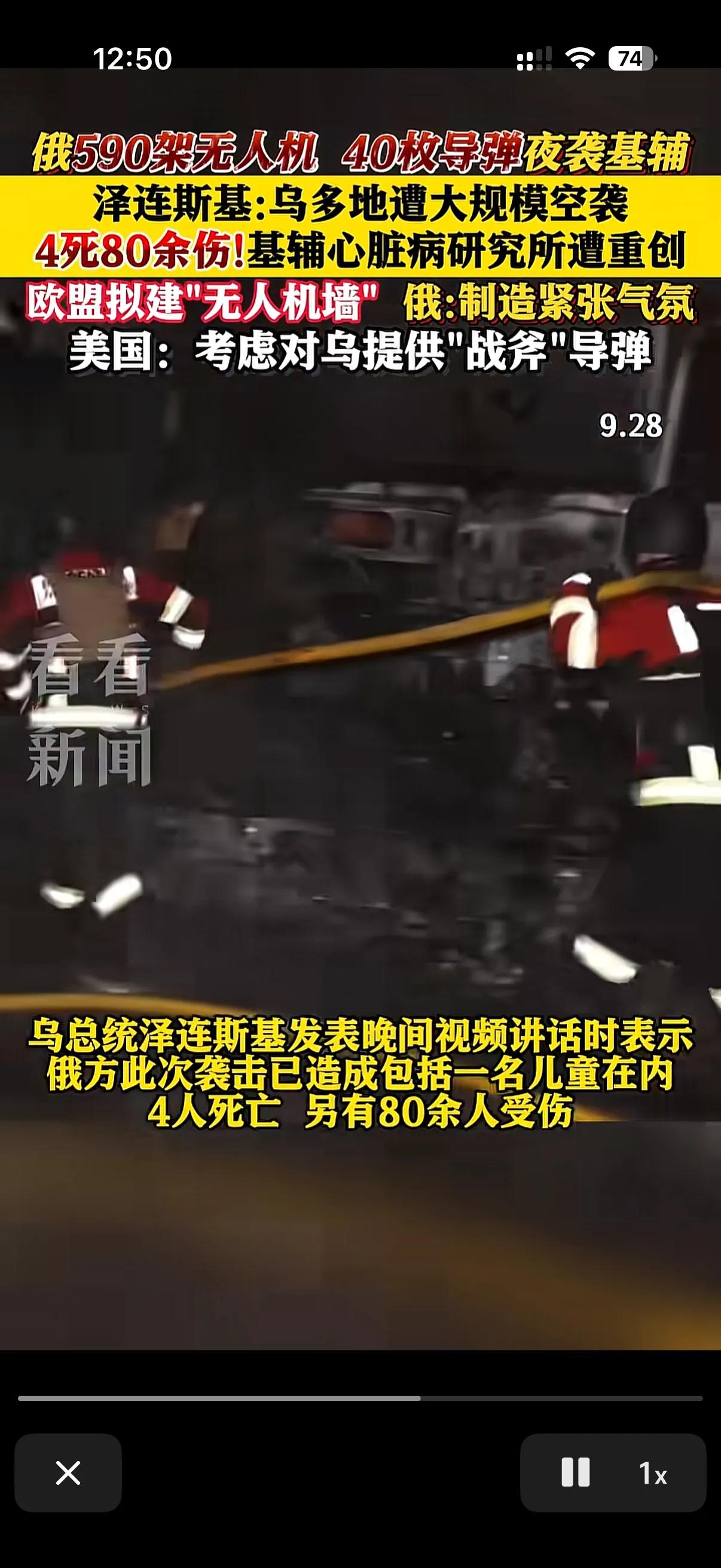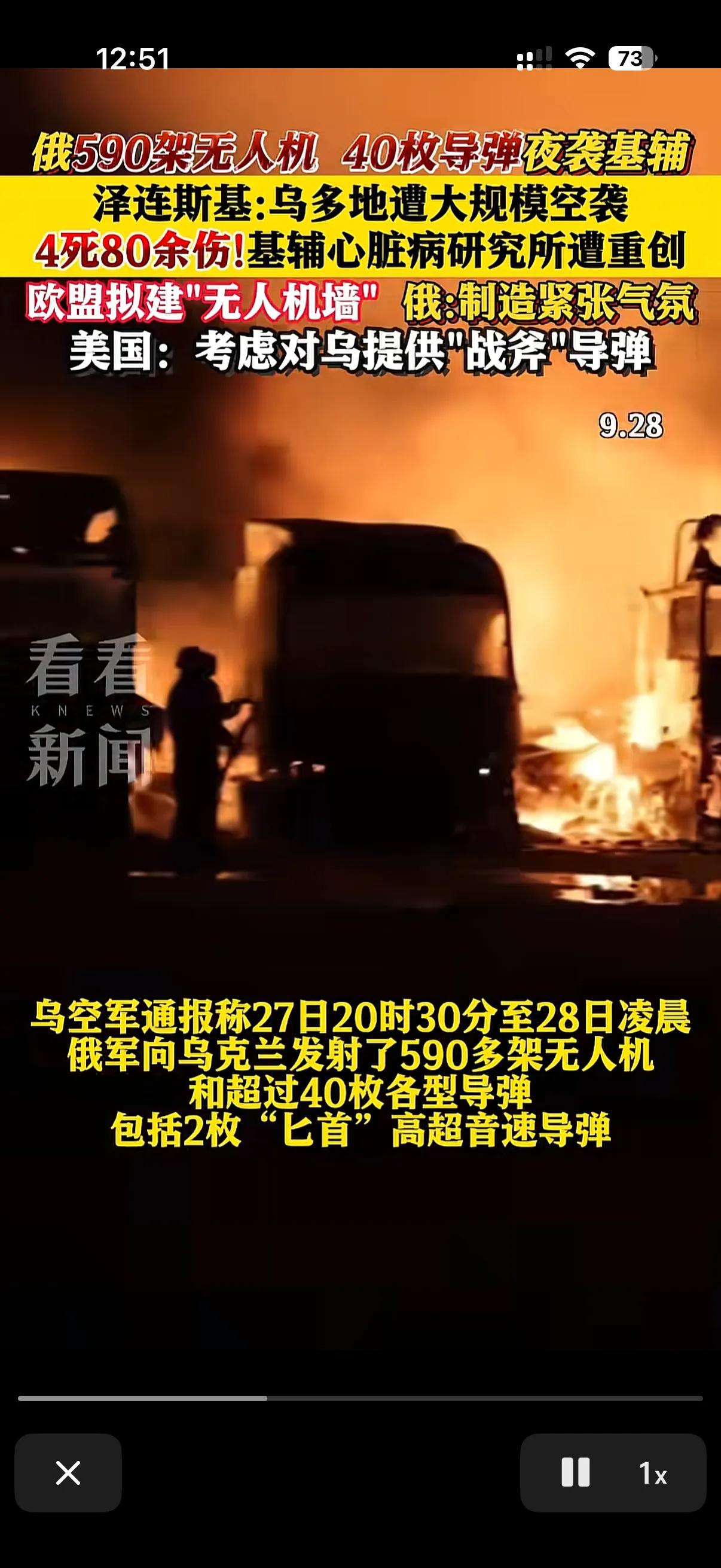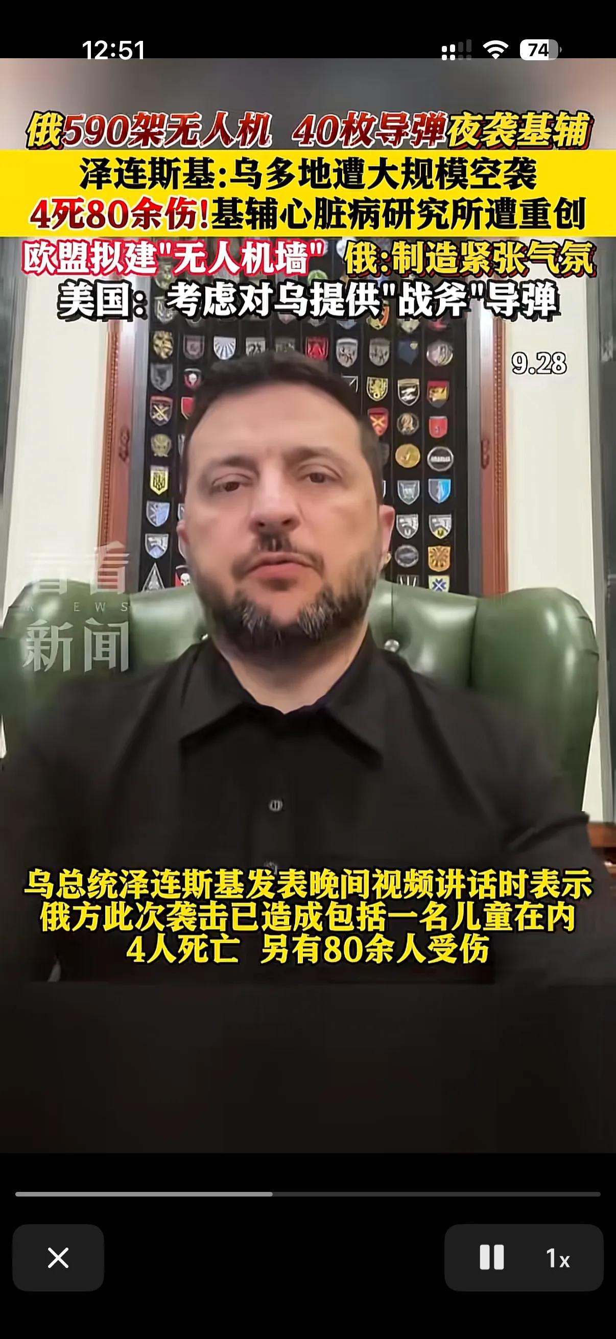 9·28乌克兰又被俄罗斯袭击了。这次俄罗斯出动了590架无人机和40枚导弹袭击了基辅。 泽连斯基发表讲话声称,俄罗斯的这次袭击造成了乌克兰的大量人员伤亡。 如果乌克兰还不能得到有力的武器话,乌克兰是无法得到保障的。 对此欧盟宣称要建造无人机墙,用以防范无人机袭击。 该说不说,当初乌克兰就是利用无人机突袭了俄罗斯,没想到现在俄罗斯反过来用无人机不断袭击乌克兰,乌克兰就受不了了,不得不说俄罗斯现在是青出于蓝而胜于蓝了! 不过这不影响美国继续从乌克兰进口无人机。 美国副总统万斯称如果俄罗斯继续进攻乌克兰,美国就考虑对乌克兰出售战斧导弹! 看来俄罗斯和乌克兰的战争还有的继续!