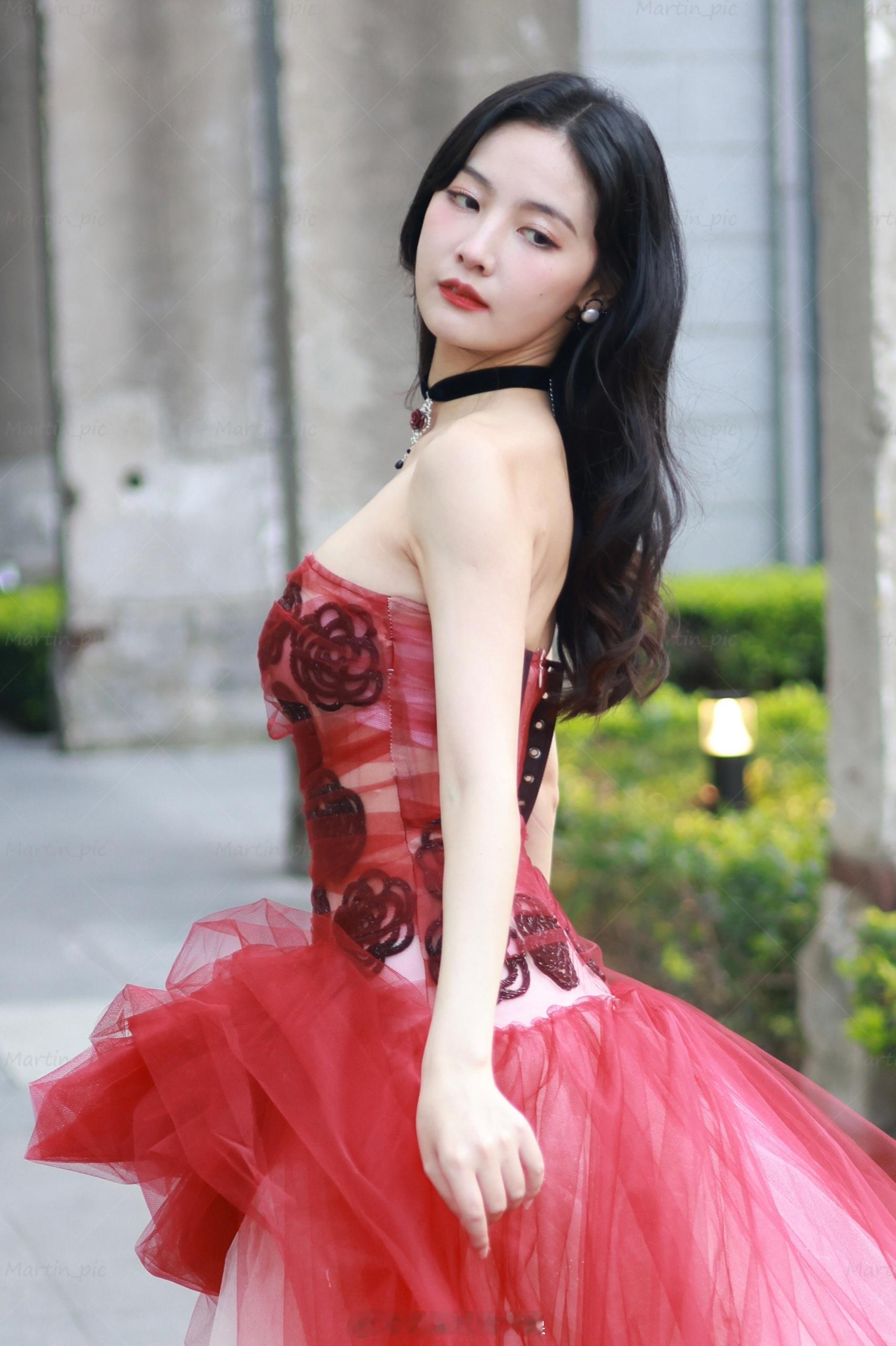 许久未见,赵粤也是长大了,穿玫瑰抹胸裙秀曲线,美背白到发光!
