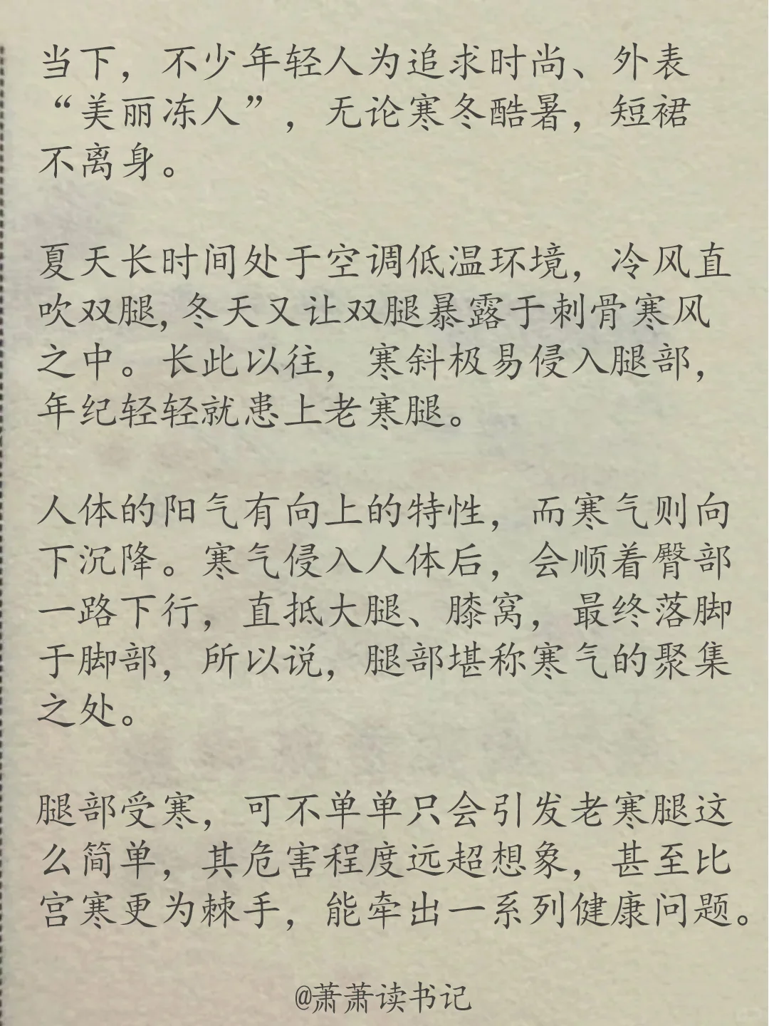 倪师:腿寒很可怕。