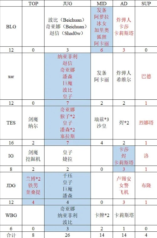 网友统计各战队MVP分布:BLG中路最多IG下路最多 TES AL集中打野