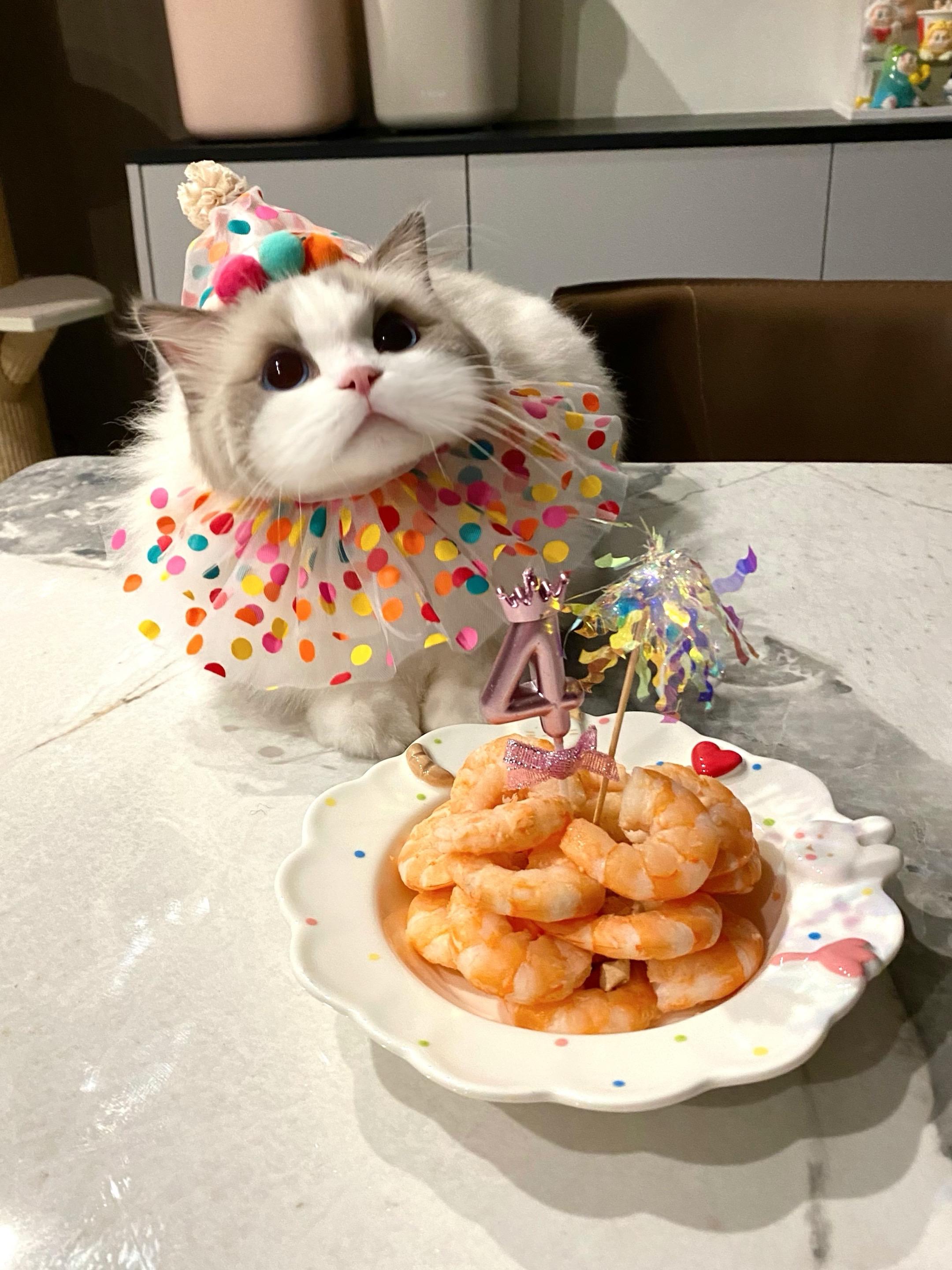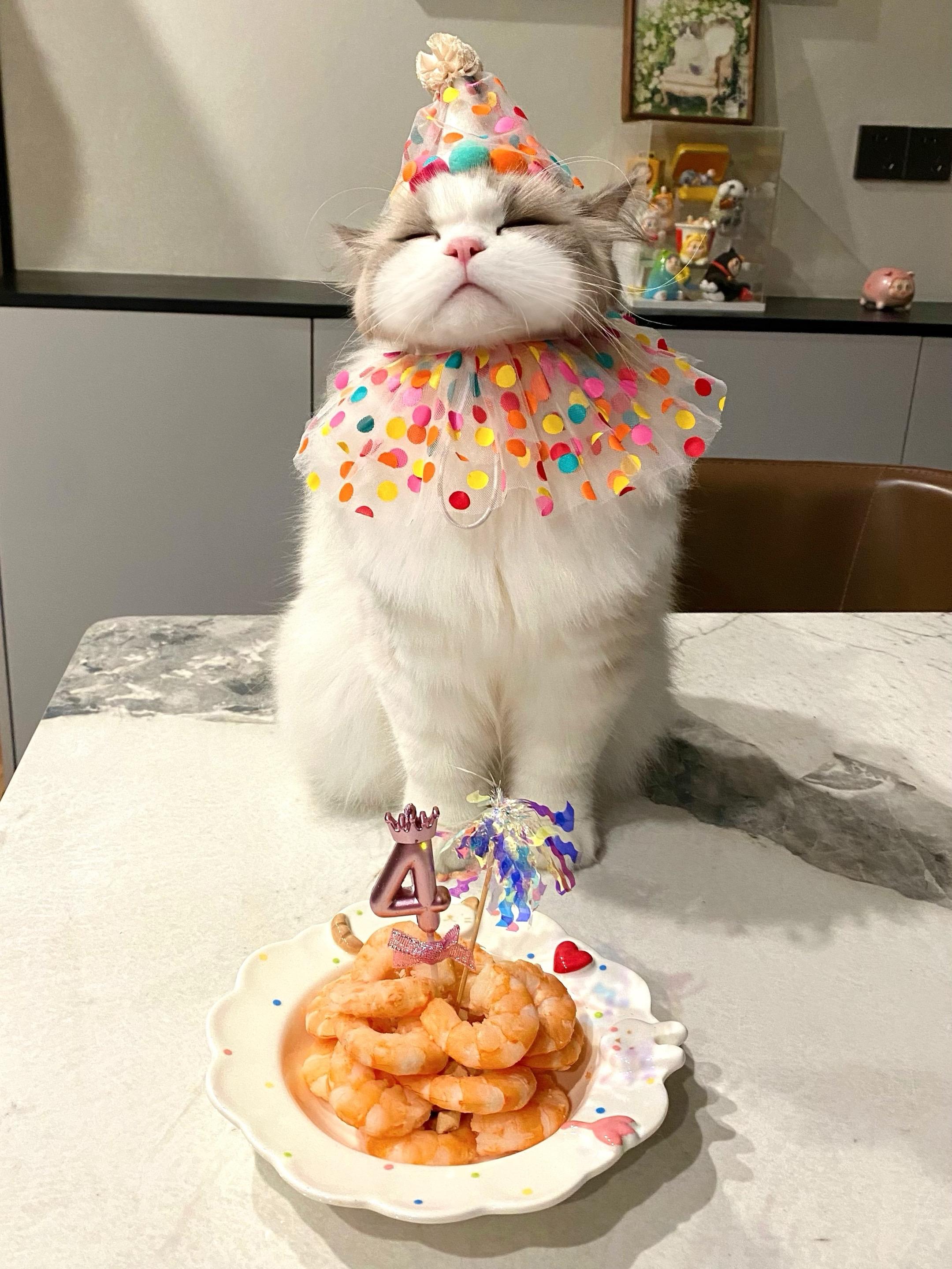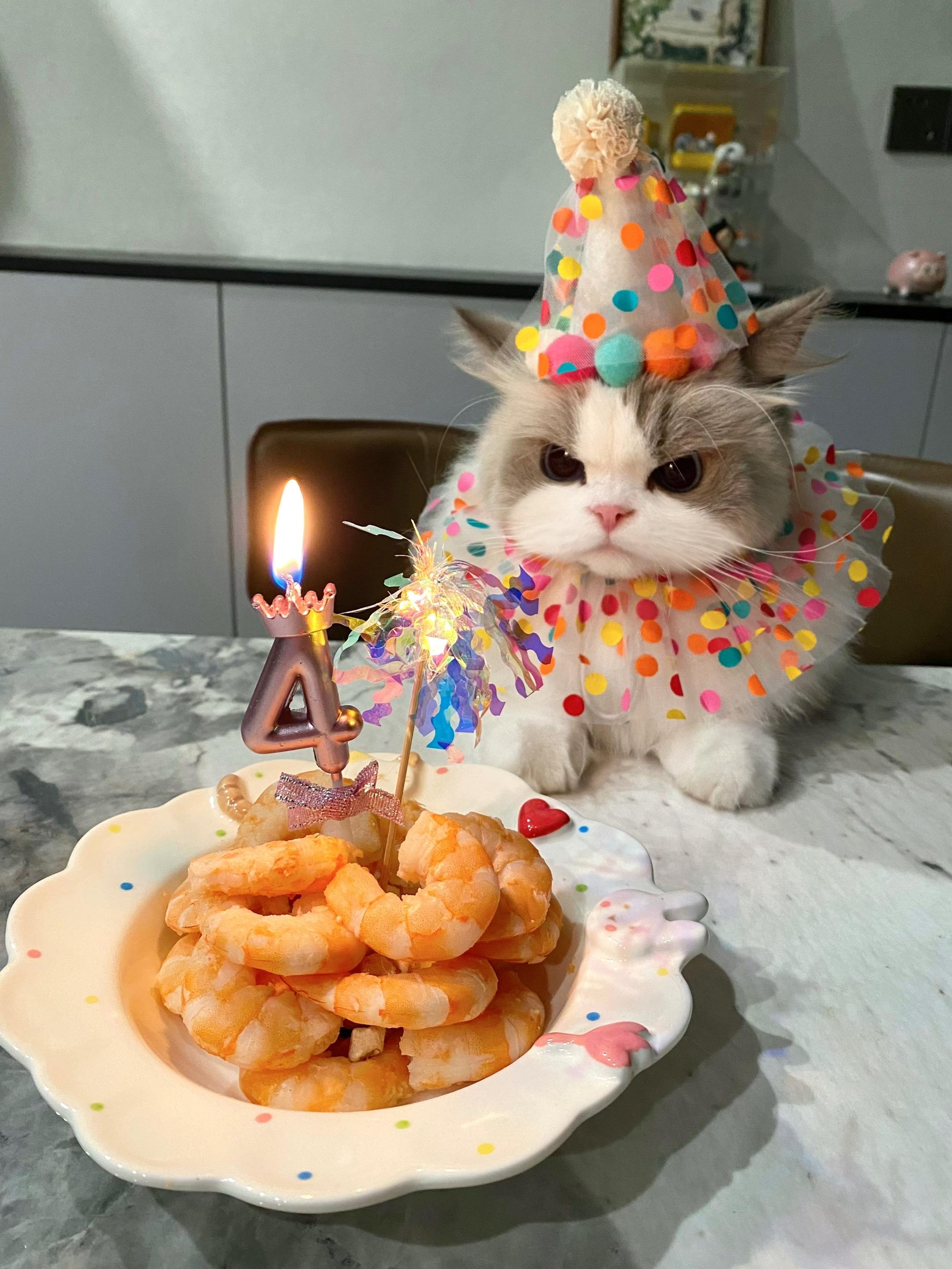 从今天起就是4岁的小猫啦!有你陪在身边的每一天都很幸福 🐱:愿望是下一次生日吃十个罐罐!
