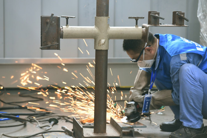 比赛正式开始后,考场内瞬间响起焊机的轰鸣声,蓝色弧光透过防护屏不断闪烁,焊花四溅。各位选手全神贯注,凭借精湛的技艺和稳定的心态,有条不紊地进行焊接操作,每一道焊缝都力求精准,在毫厘之间展现出高超的专业水准,充分彰显了双流区产业工人精益求精的工匠精神。