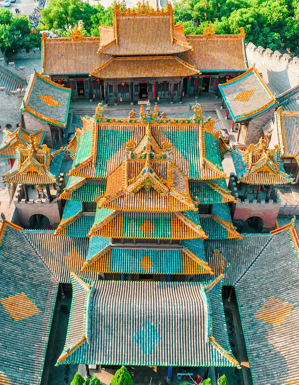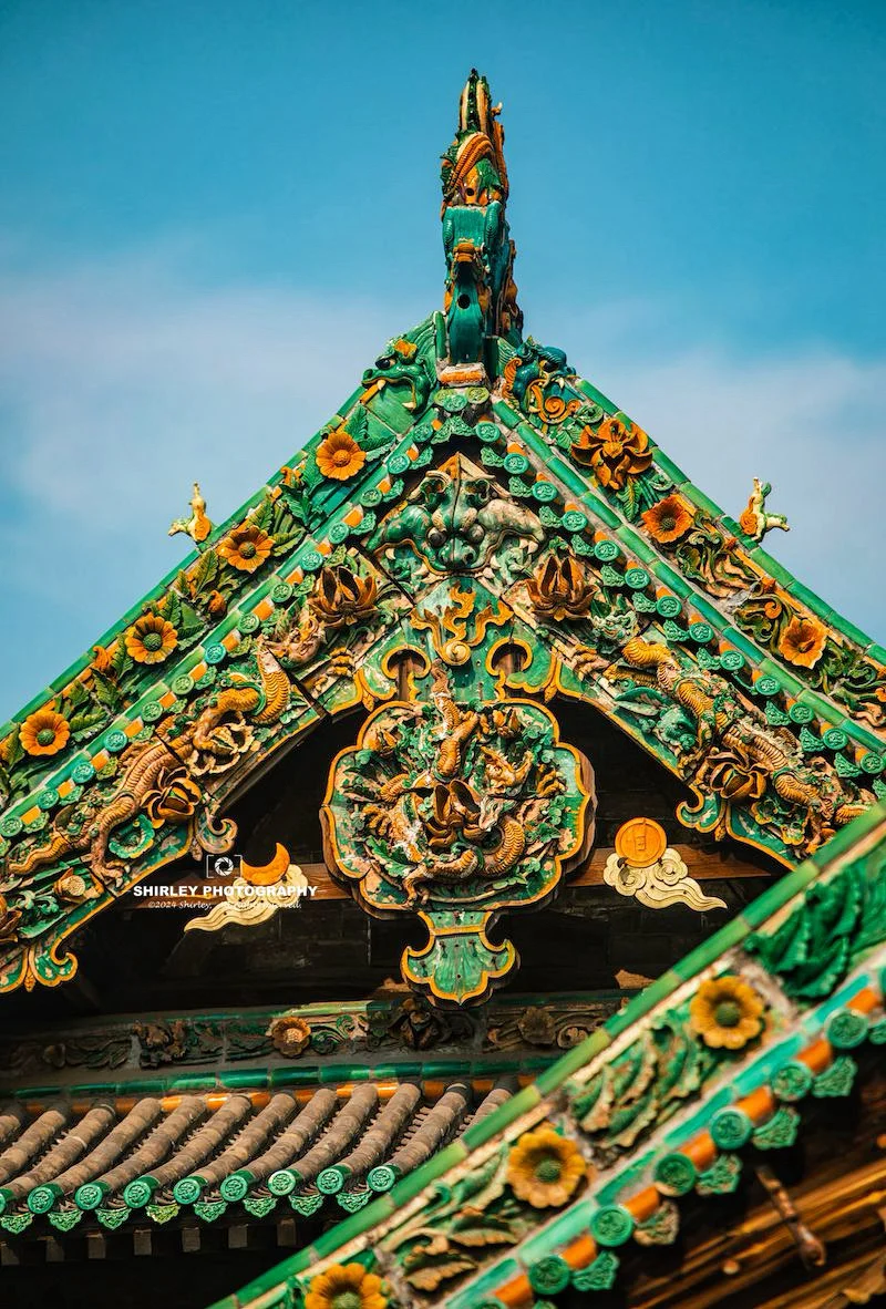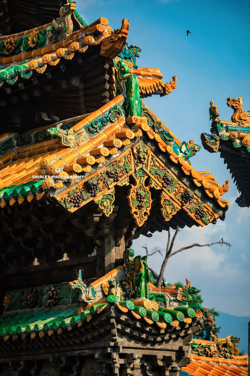 “琉璃王国”是介休最吸引我们的属性。山西保存了极为完整的古代琉璃建筑,在全国无出其右。那些屋脊瓦片上的流光溢彩,不知惊艳了多少人。而被誉为“中国琉璃之乡”的介休,无疑是其中的佼佼者。