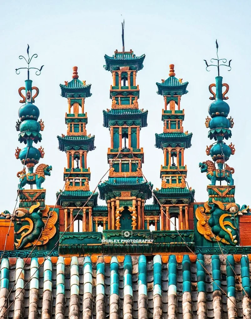 藏在社区大院里,只剩一座未开放的主殿,清代重修。正脊中央那楼阁式的琉璃脊刹让人过目不忘。