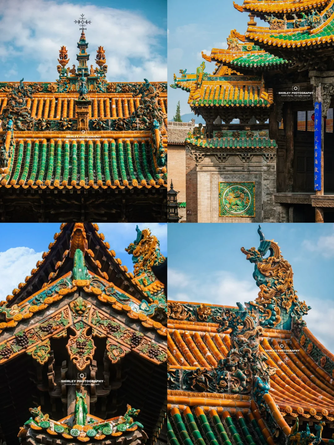 介休琉璃的巅峰巨作!现存建筑多为明清遗存,其中之最莫过于三清楼与后土圣母殿合围而成的那个院落,举目四顾皆是雍容华贵、流光溢彩的各色琉璃。