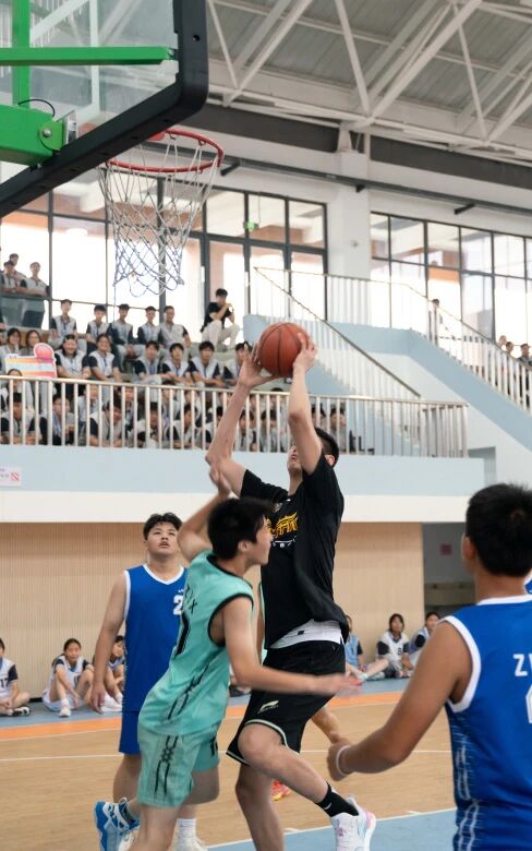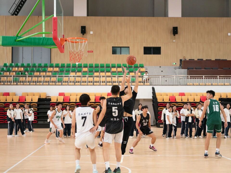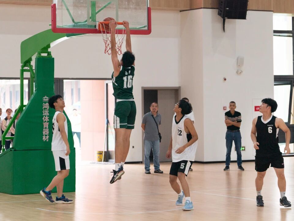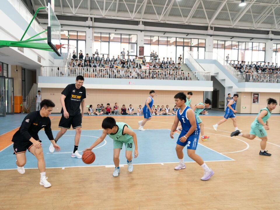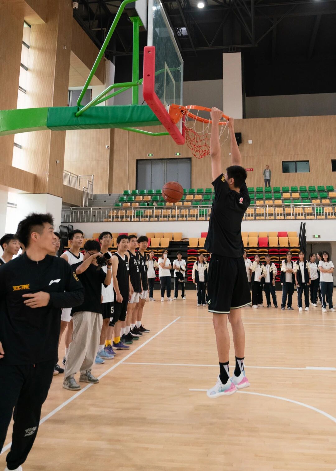 活动伊始,李禄曈与言恒栋便开启了精彩的技巧展示环节。李禄曈凭借出众的身高优势展现了精彩的扣篮表演,言恒栋则以灵活的运球变向和利落的突破上篮点燃现场气氛,每一个专业动作都引来同学们的阵阵惊呼。技巧展示后,球员们与学生篮球队员随机组队,展开了一场激烈又欢乐的全场交流赛。比赛中,职业球员与校园学子的默契配合让赛场充满青春活力。
