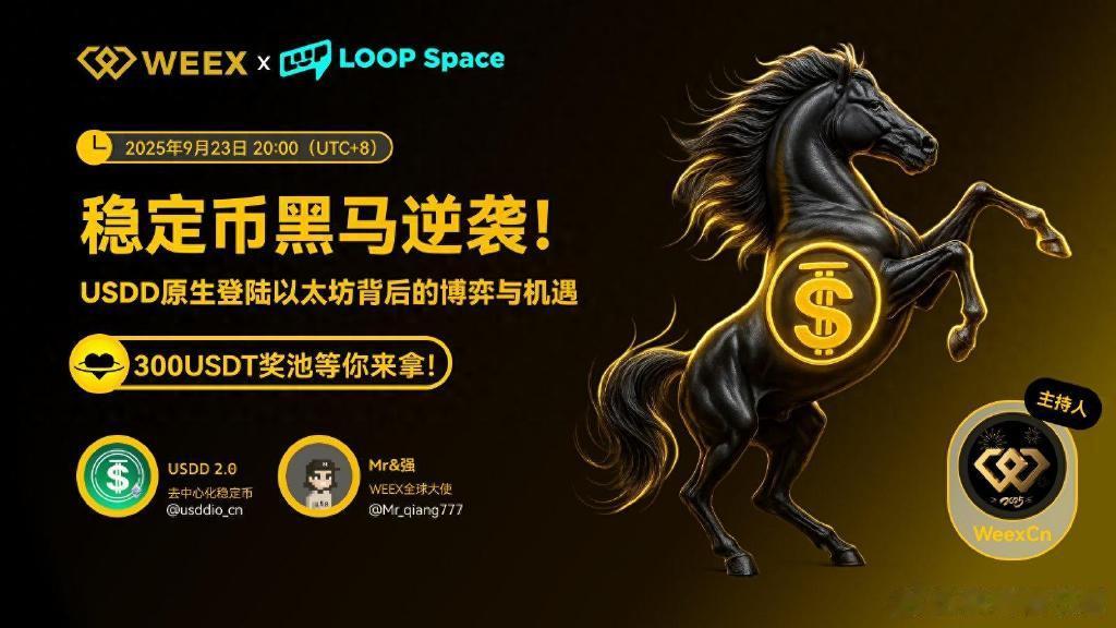 2025年9月23日(UTC+8),WEEX与USDD联合举办了一场深度TwitterSpace,主题聚焦“去中心化稳定资产的挑战与机遇”。距离USDD原生登陆以太坊仅两周,数字资产社区的目光都聚焦在这个备受关注的稳定资产上:它能否在市场主导者的格局中占据一席之地?