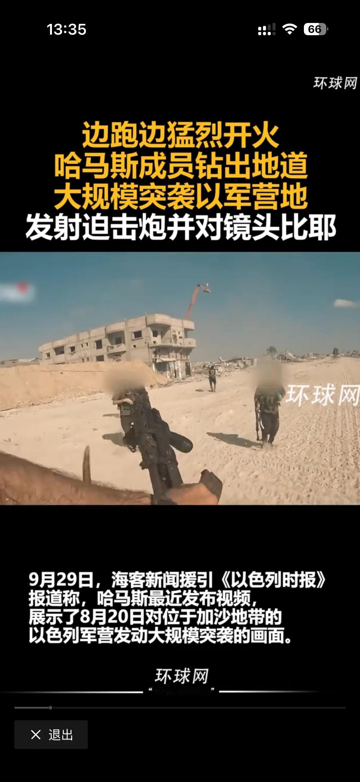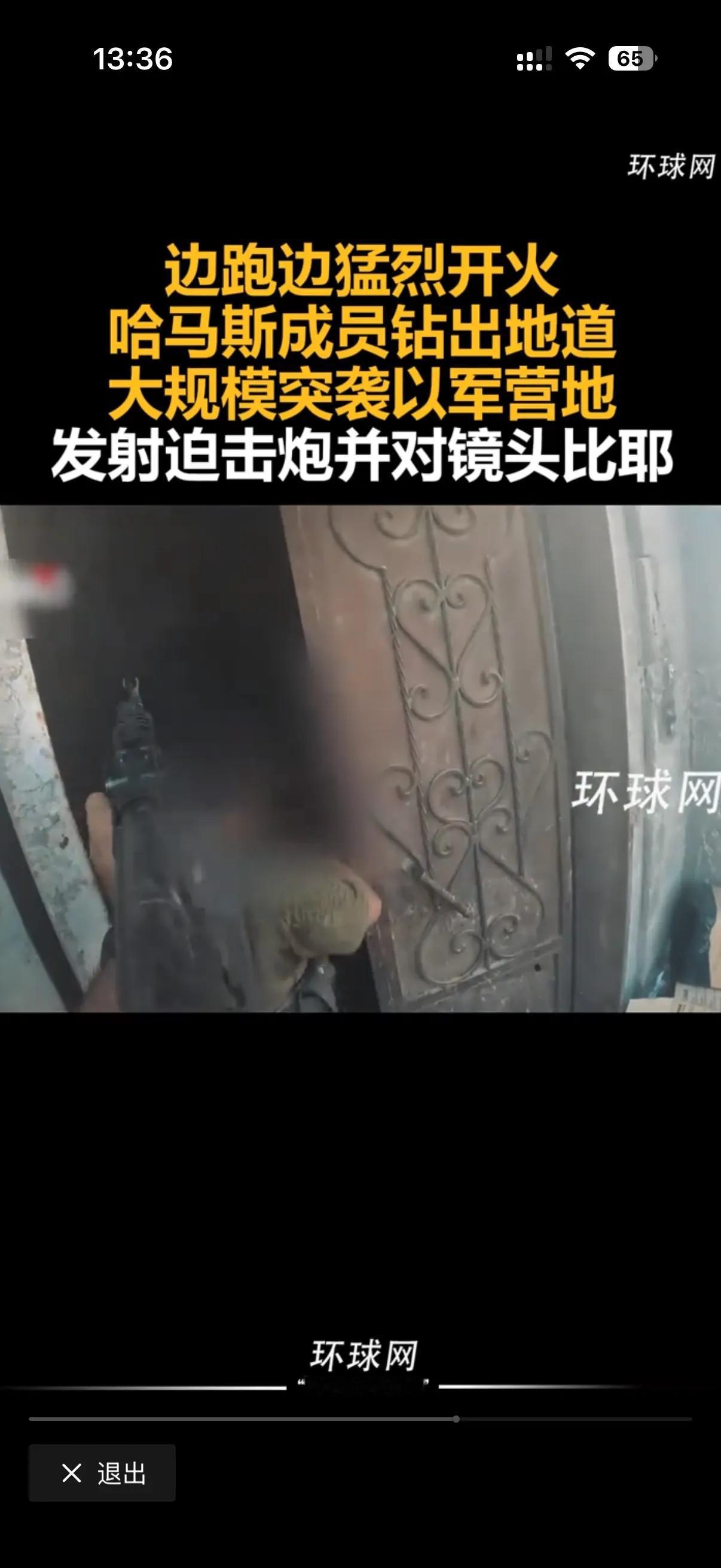 前两天以色列发表演讲的时候说,哈马斯的人都从地下爬出来,向以色列投降了! 并且还展示了哈马斯投降士兵投降的图片! 对此哈马斯没有做出任何的辩解,但是几天以后,哈马斯就发布了一段视频,那就是哈马斯的士兵确实是从地下钻出来了,但是并没有像以色列说的那样,是向以色列投降,而是端着武器发动对以色列军队的袭击! 视频里哈马斯的士兵正从地下掩体里冲出,手里拿着武器袭击,并且像镜头里展示攻击效果