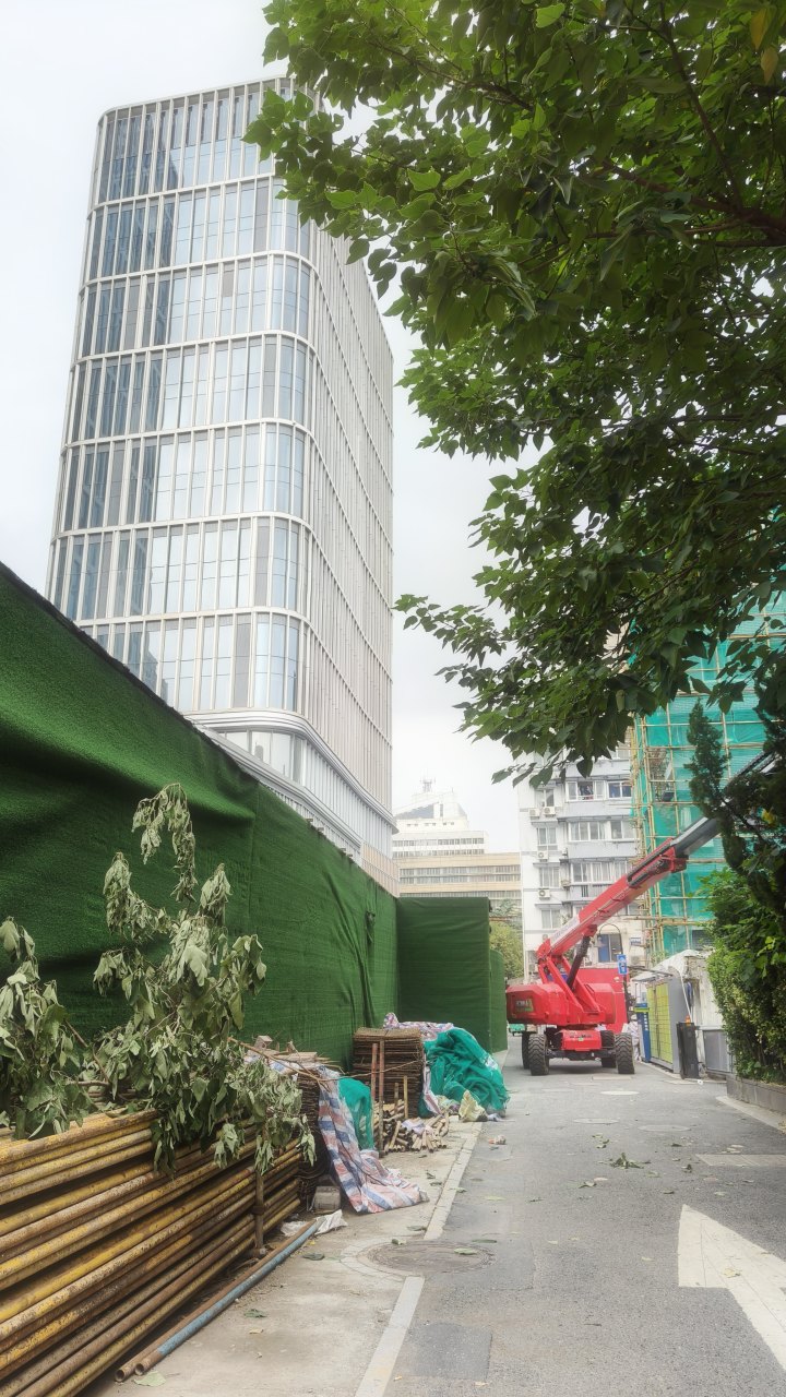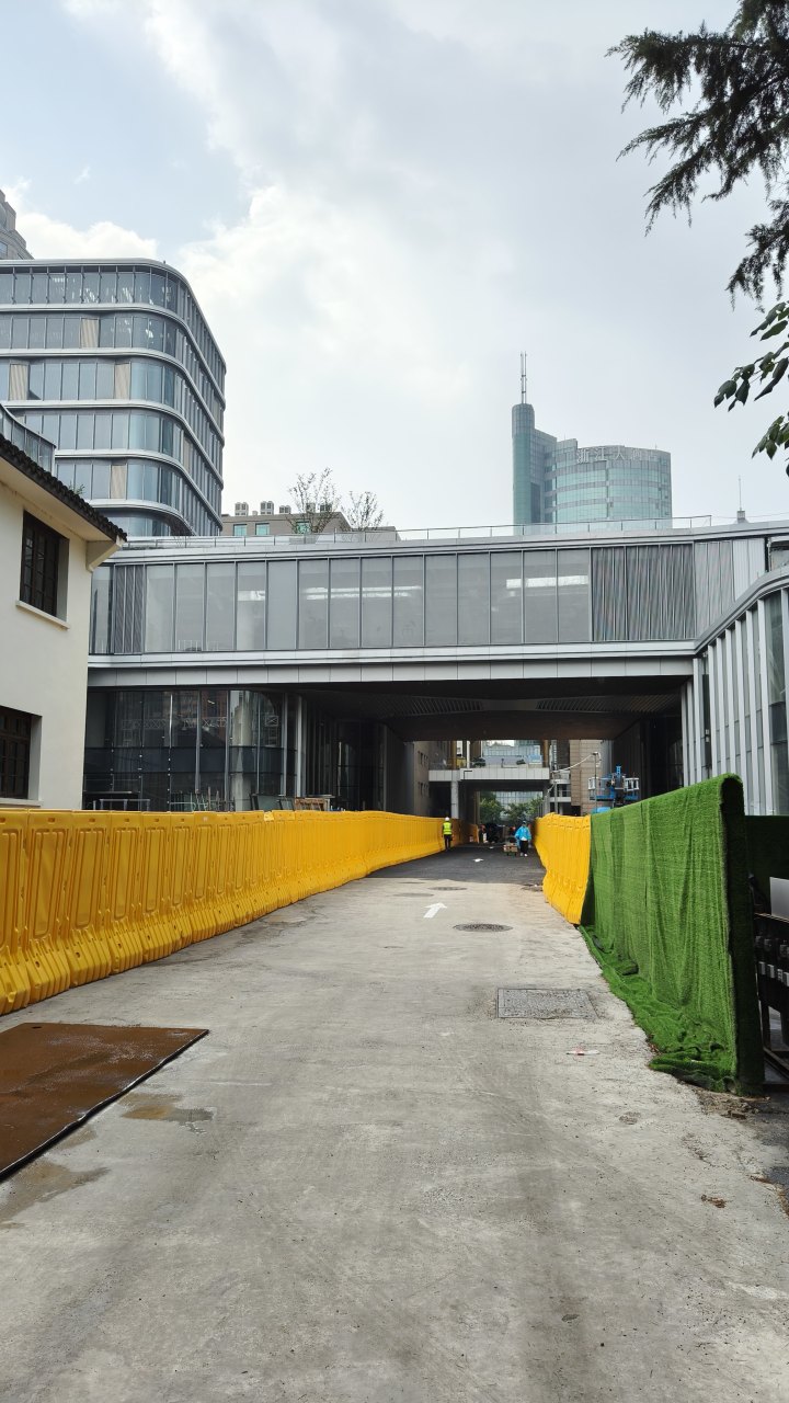 新打开的西段,左右两侧被黄色的建筑围挡围住,两侧都属于恒隆广场项目,从目前外立面建设来看,和恒隆最近公布的开业进度基本吻合,工程已接近尾声。