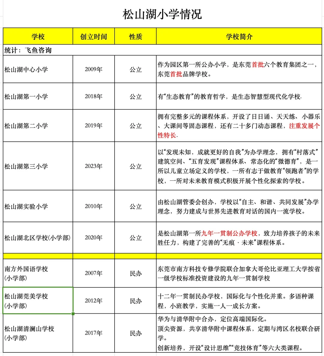 1、对于松山湖的小学,图二有列出每一所学校的特色,总结如下: