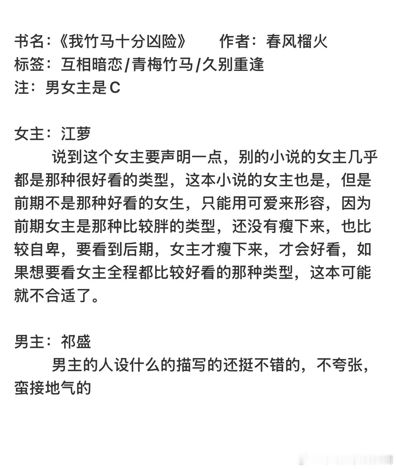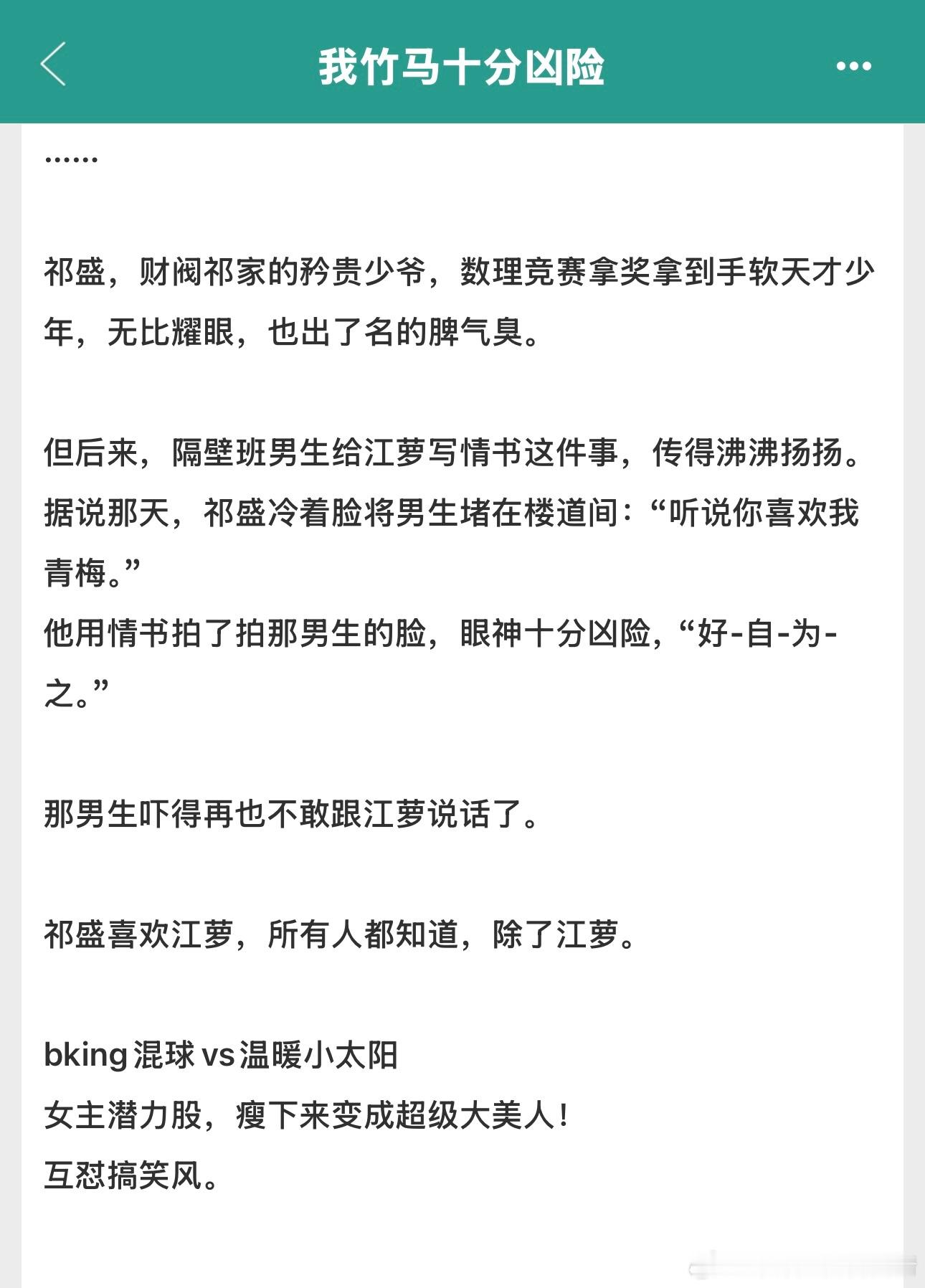 书名:《我竹马十分凶险》 作者:春风榴火