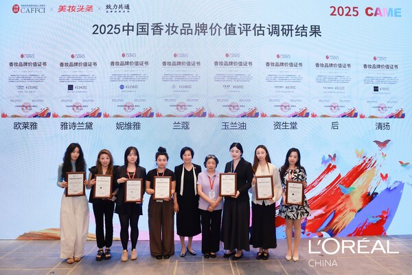 欧莱雅对中国市场的长期承诺与卓越贡献,不仅体现在理念引领,更落实于品牌建设与出色的市场表现。今年7月,欧莱雅集团旗下巴黎欧莱雅、兰蔻、圣罗兰、赫莲娜、卡诗、修丽可、科颜氏、理肤泉与阿玛尼九大品牌,凭借其在中国大陆全渠道零售市场的杰出业绩与消费者口碑,成功入选中国香料香精化妆品工业协会权威发布的"2024年度化妆品品牌TOP50"榜单。在此次CAME的"美力大赏"环节中,主办方也通过时尚走秀形式集中呈现了这些获奖品牌的代表产品,进一步展现欧莱雅多元美学创造力。此外,巴黎欧莱雅与兰蔻还成功入选了2025中国香妆品牌价值评估调研结果名单,并获得权威认证的香妆品牌价值证书,体现出其在品牌影响力与市场认可度方面的持续领先地位。