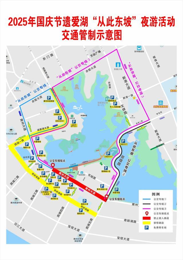 为保障2025年国庆节期间“遇见黄州·从此东坡”水上夜游活动安全、有序、精彩呈现,黄冈市公安局交通管理支队会同黄冈市交通运输局,将于特定时段对遗爱湖周边部分道路实施临时交通管制措施。现将具体事项公告如下: