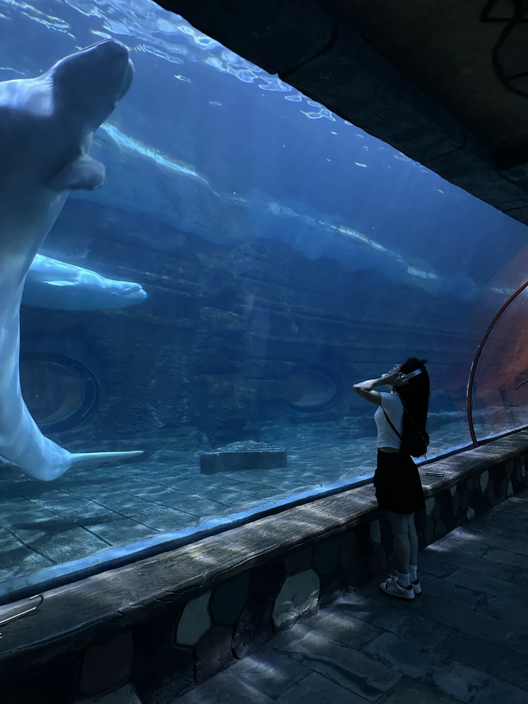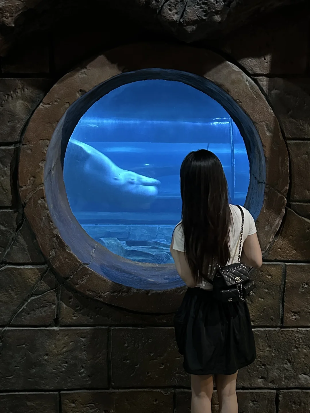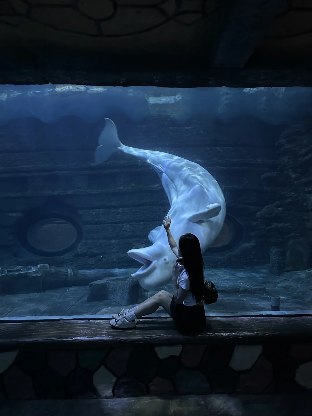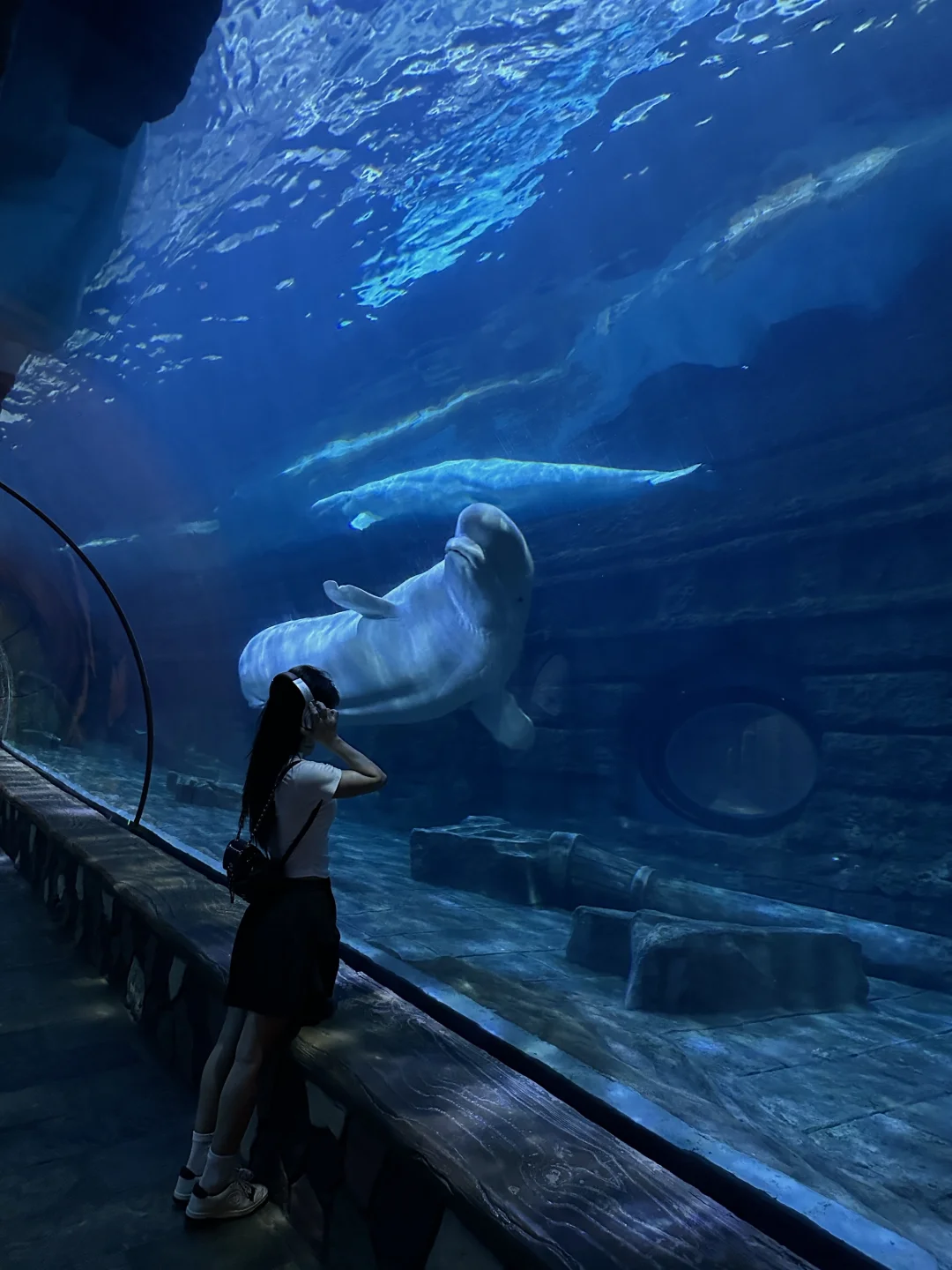 🤍tips:游玩与拍照想要出片,9点一开园就进园,然后可直奔白鲸海,这个时候人流都在门口的场馆,还有一部分观众会去看海象表演,白鲸海基本没有人,我们承包了一整个场馆,拍完再去雨林海豚湾,就在白鲸海对面