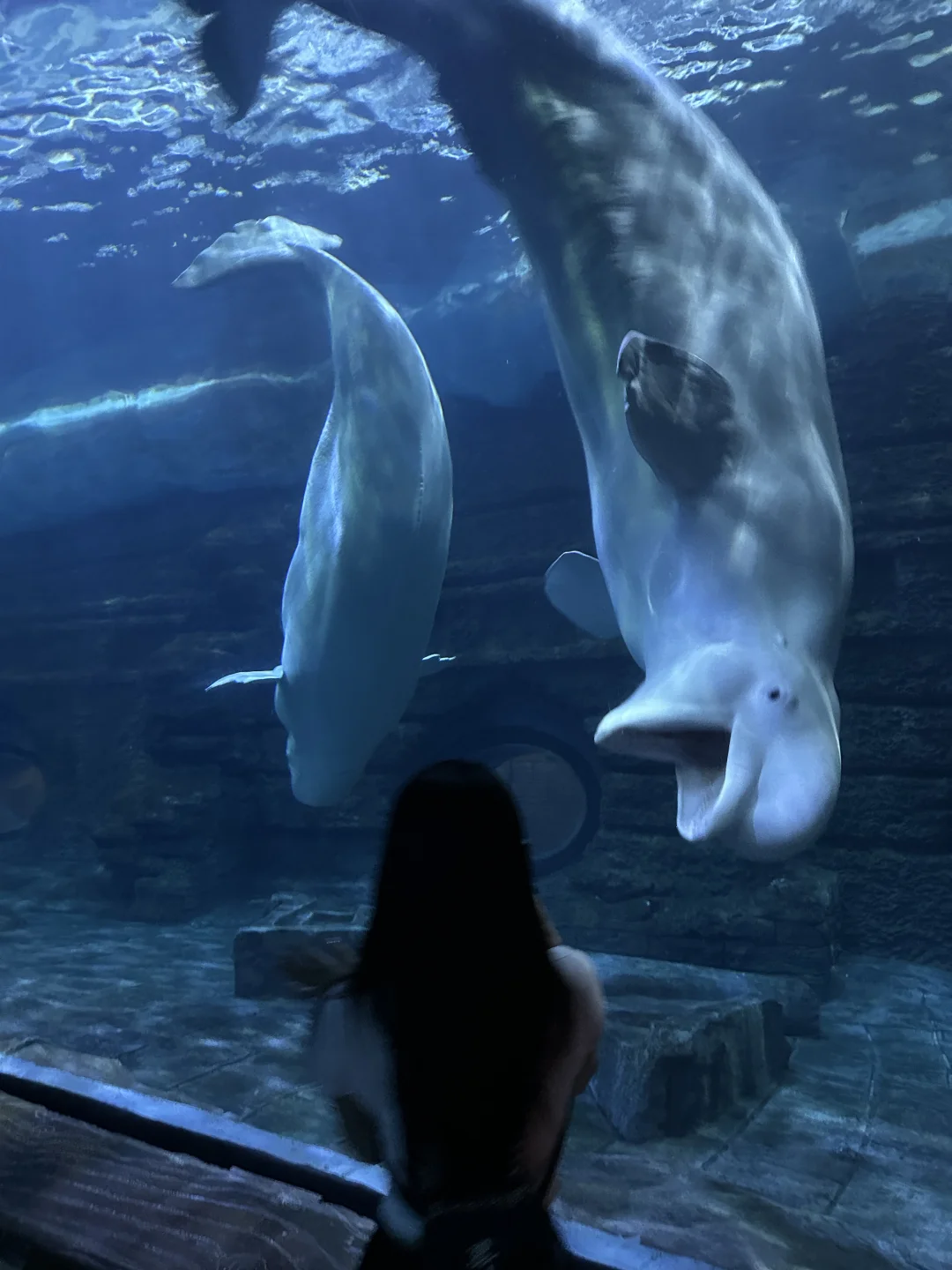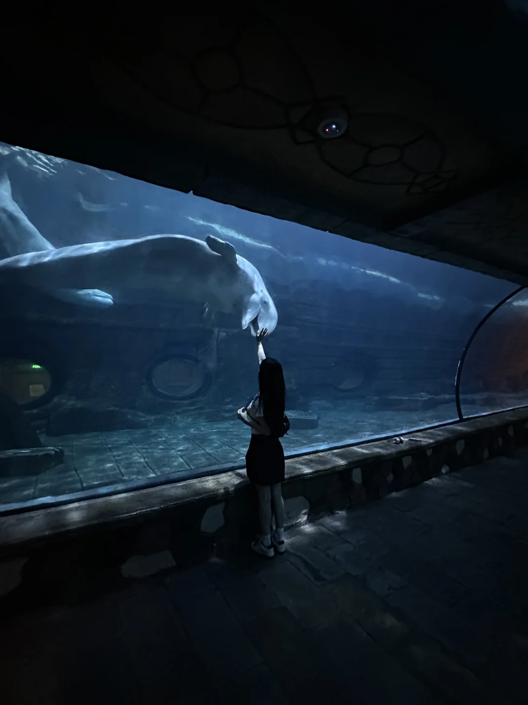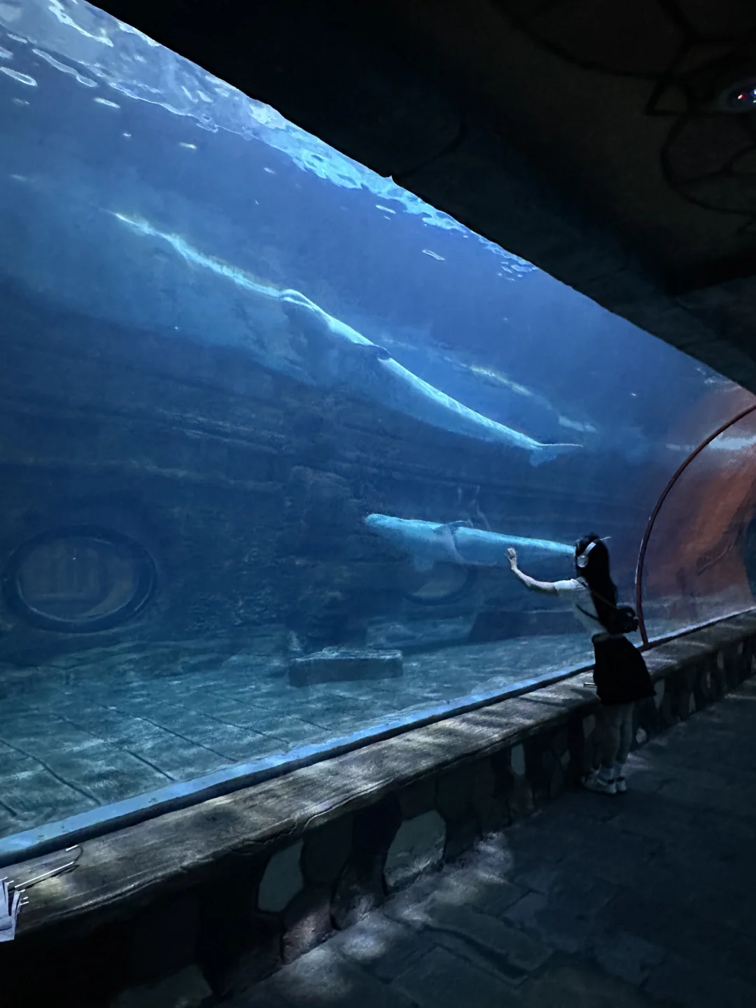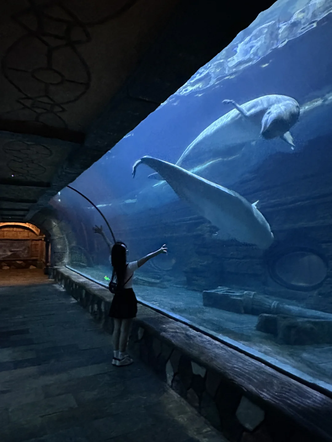 🤍tips:游玩与拍照想要出片,9点一开园就进园,然后可直奔白鲸海,这个时候人流都在门口的场馆,还有一部分观众会去看海象表演,白鲸海基本没有人,我们承包了一整个场馆,拍完再去雨林海豚湾,就在白鲸海对面
