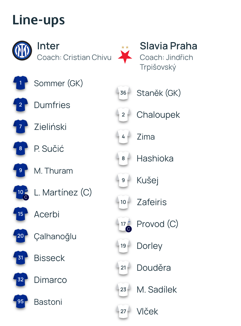虎扑10月01日讯欧冠联赛小组赛第2轮,国米主场迎战捷克球队布拉格斯拉维亚,赛前,双方公布了本场比赛首发名单。
