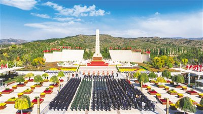 秋高气爽,松柏苍翠。烈士纪念碑广场庄严肃穆,“人民英雄永垂不朽”八个金色大字在阳光下熠熠生辉。