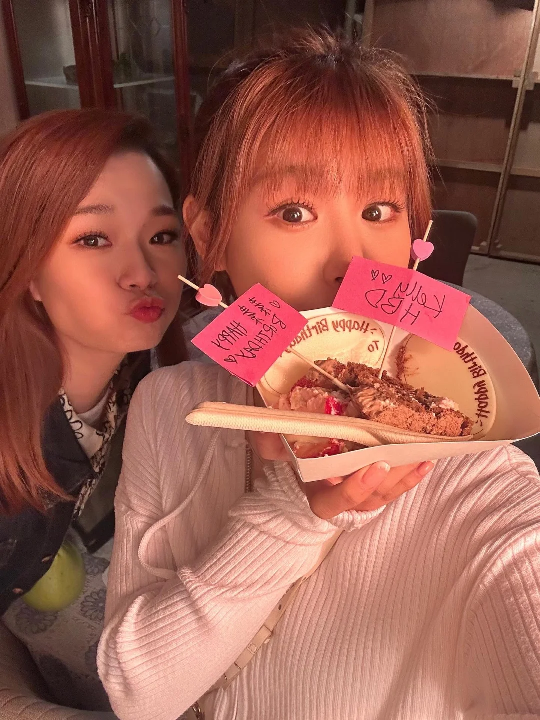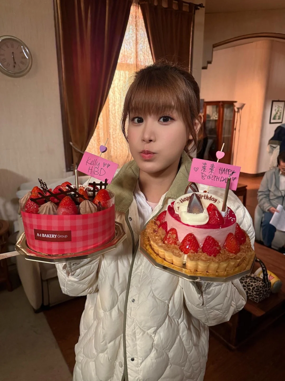 她晒图写到: 每年生日,讓我心頭暖暖的從來不只是蛋糕,而是愛回家這個大家庭帶來的滿滿溫暖。 26歲的生日,因為有你們而變得格外不一樣—是拍攝間隙遞來的一杯熱咖啡,是鏡頭外默契的玩笑,更藏著你們滿滿的愛,點亮了整個現場的歡樂。在劇組的日子,從來不只是工作,更像是和家人一起,把平凡的日常過成了有溫度的故事。 謝謝你們用包容、愛與這份貼心的驚喜,把我的生日裹成了一份甜甜的禮物。這份溫暖,比任何祝福都讓我覺得踏實又幸福。I Love You Guys💖