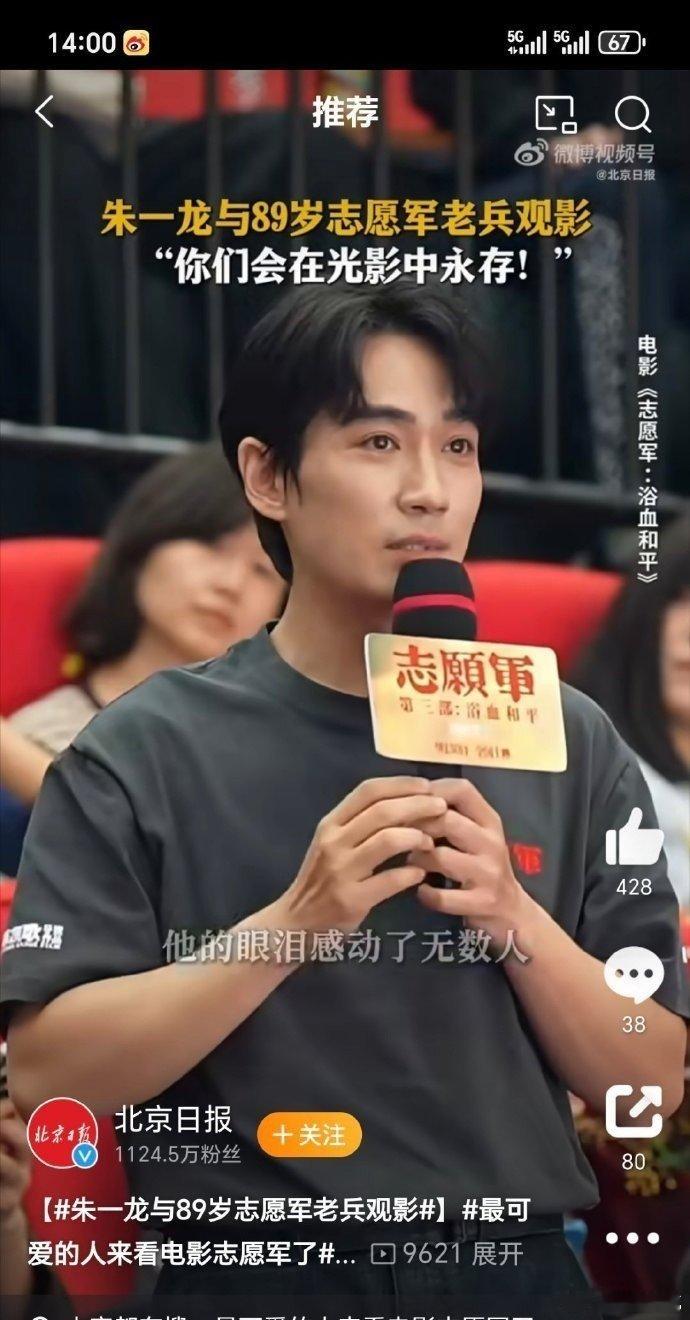 朱一龙与89岁志愿军老兵观影 朱一龙和89岁的老兵一起看电影《志愿军:浴血和平》,真的是给我们的内心带来很多的感动了呀,现在的国泰民安离不开他们当年的付出