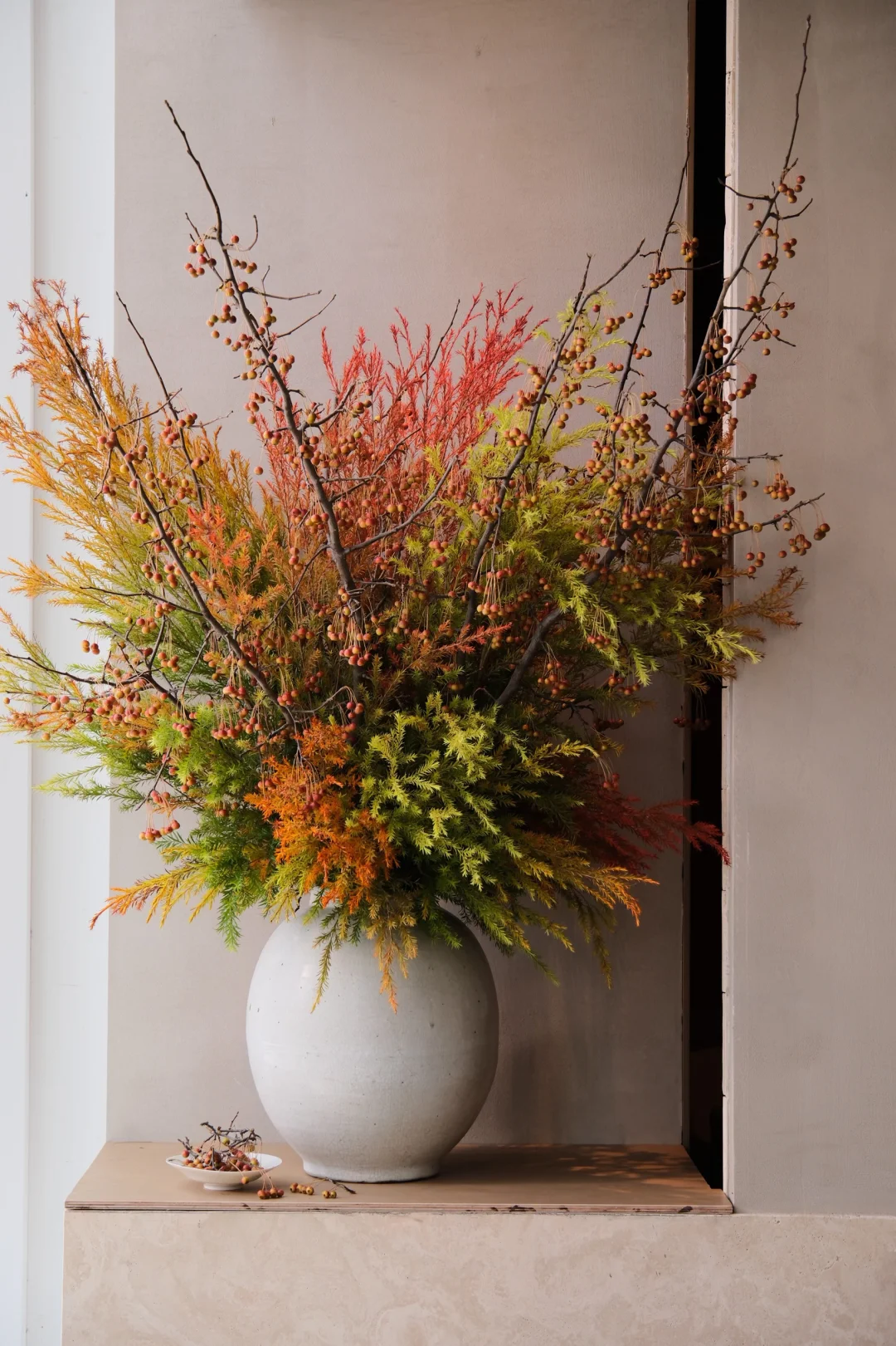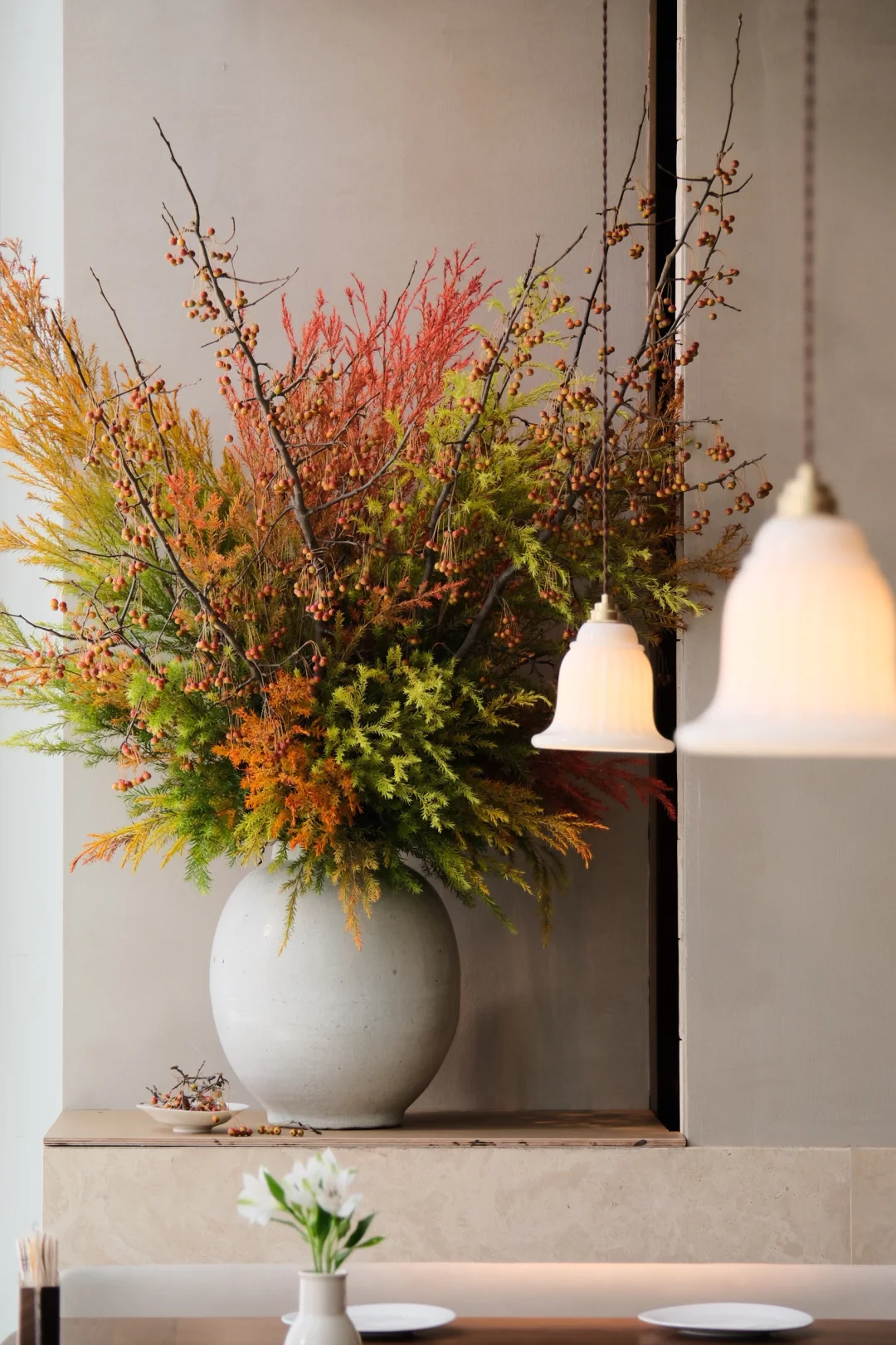 ⠀ ⠀ 为雁舍新落成的餐厅 寻得一罐秋意 中古花器与新秋的相遇 让清寂与丰盈同存 将山野的呼吸 安放在新启的空间里 愿这方寸秋意伴客人们 饮一盏温热,品一刻闲静