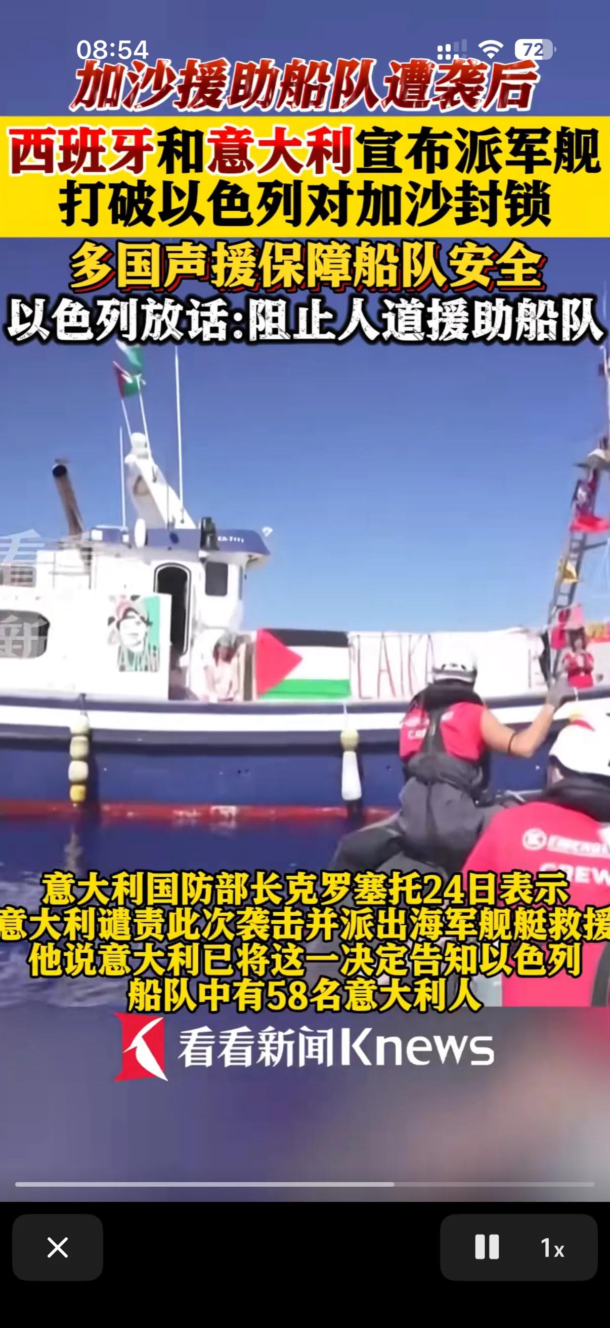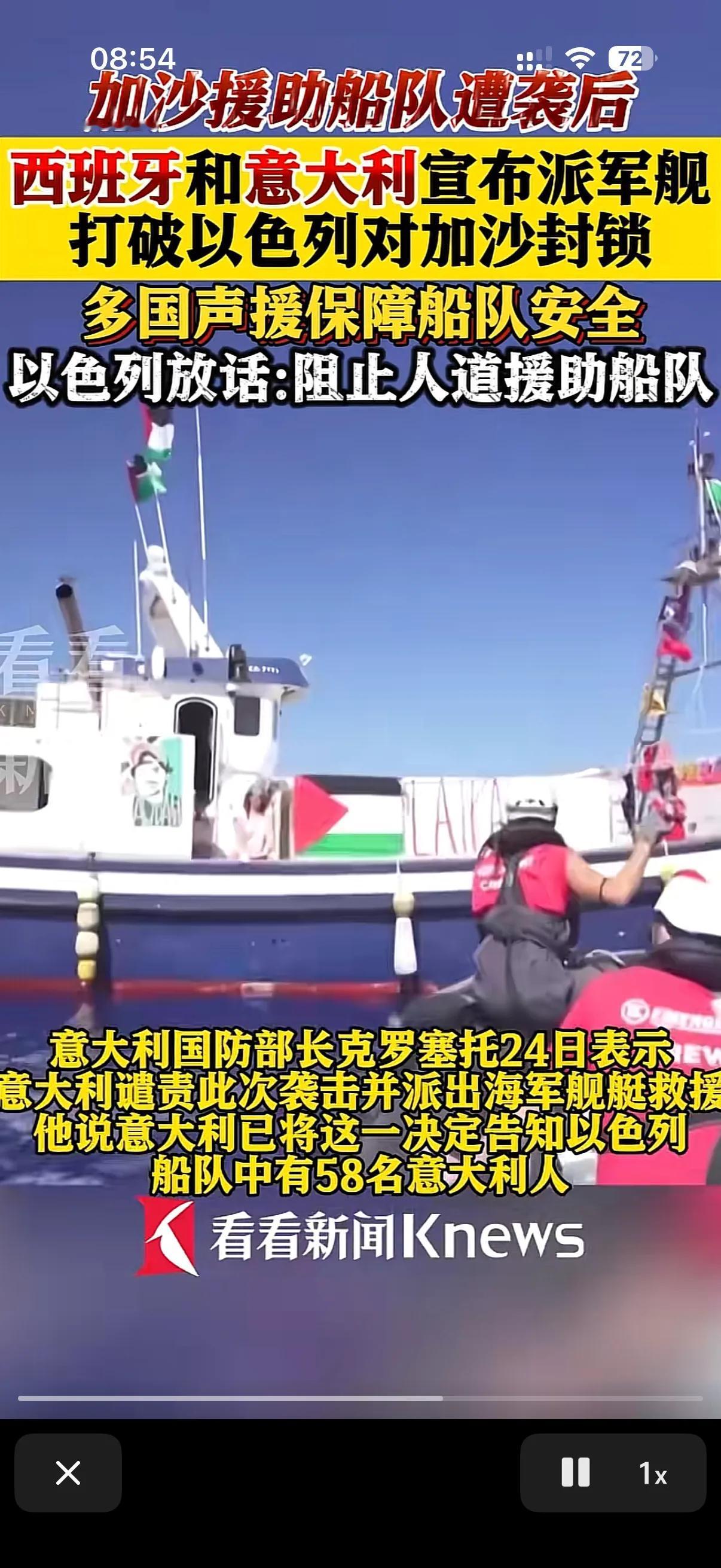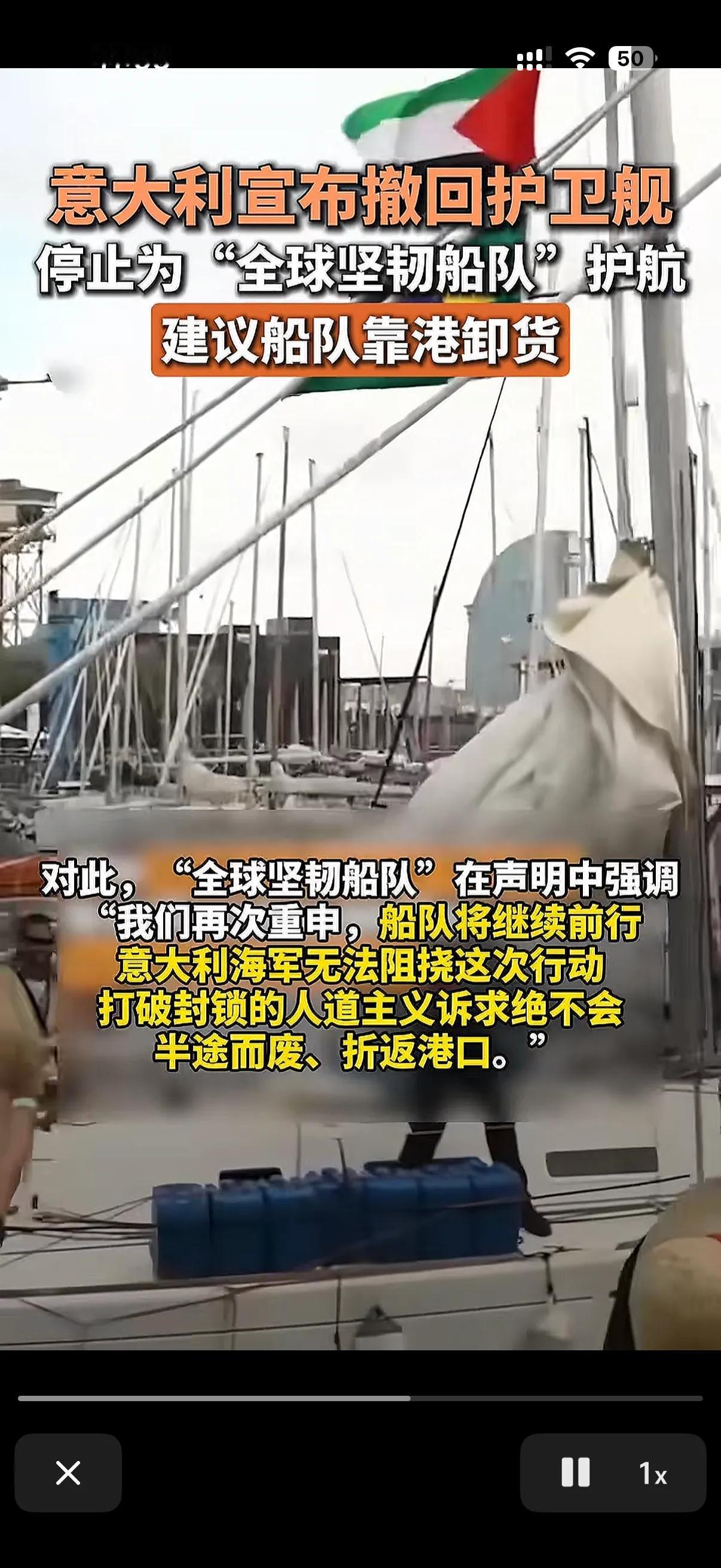 不得不说意大利果然还是咱们传统印象里的形象。原本大家说好的联合舰队护航苏穆德船队援助加沙!最开始的时候只有西班牙派了自己国家的一艘军舰! 后来相继有意大利和葡萄牙也接连宣布自己国家也会派遣军舰参加护航 可是没想到最近特朗普讲话,自己是绝对支持以色列的,并且说那些支持巴勒斯坦国的人是不理智的! 特朗普演讲完后,这个联合舰队护航直接分崩离析了!意大利走一半直接掉头回家了,并且还建议苏穆德船队直接在以色列指定的港口卸掉物资! 至于葡萄牙的军舰就是直接停在了自己国家的分界线那里! 现在只有西班牙一艘军舰在护航苏穆德船队了!不得不说西班牙还真的做到了自己曾经说过的话!为此不惜和美国发生争执!