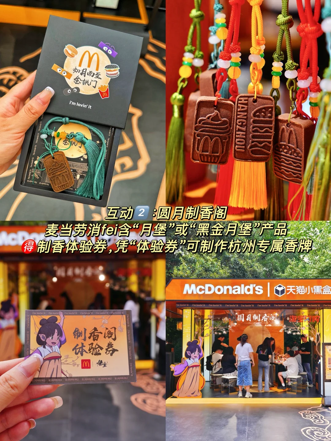 凭“体验券”DIY制作杭州专属桂花香牌,香牌纹理是麦麦和杭州景点联动图案哦,可以选择自己喜欢的流苏和礼盒包装🛍️,麦麦真的用心了!🥰