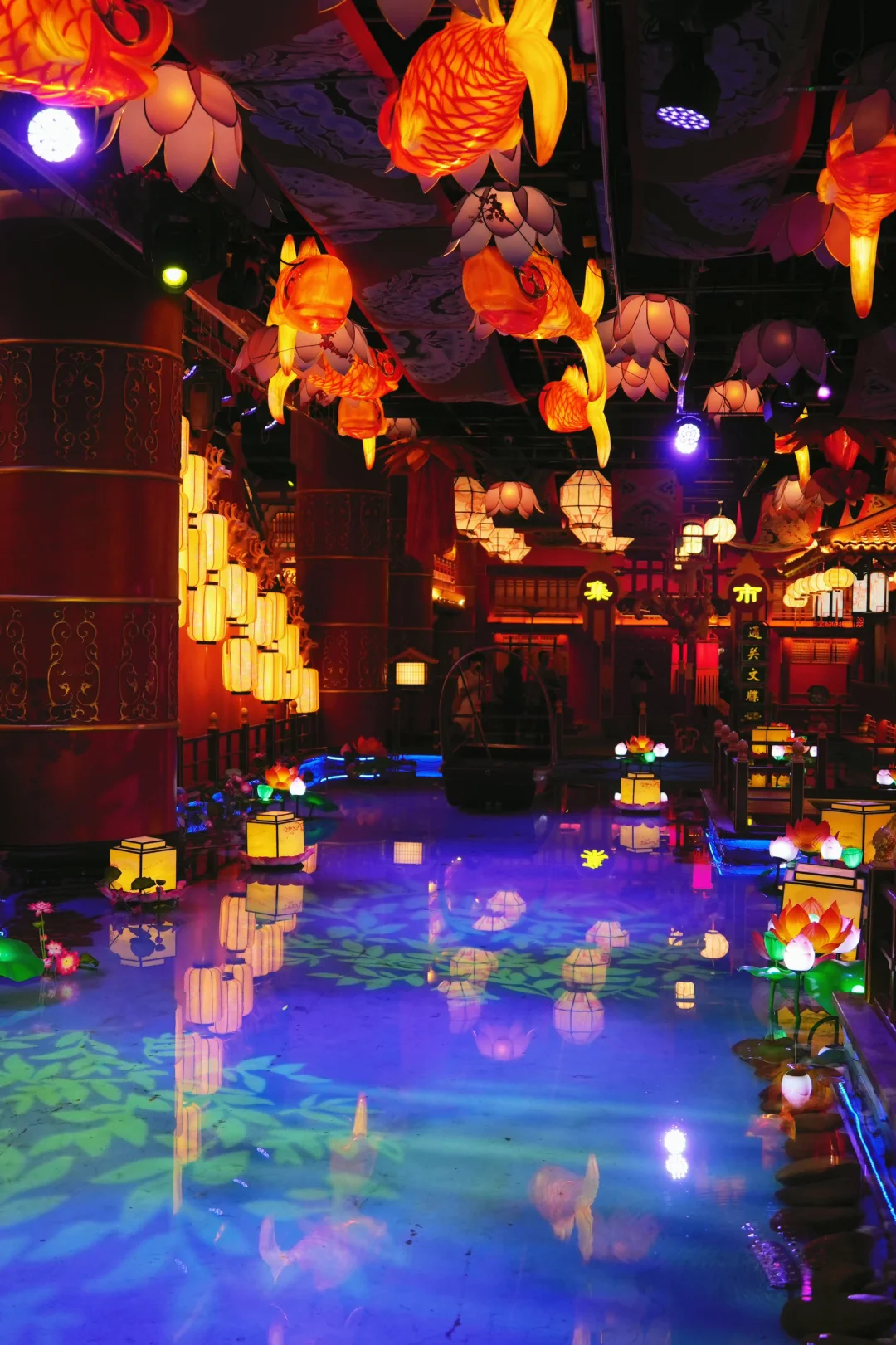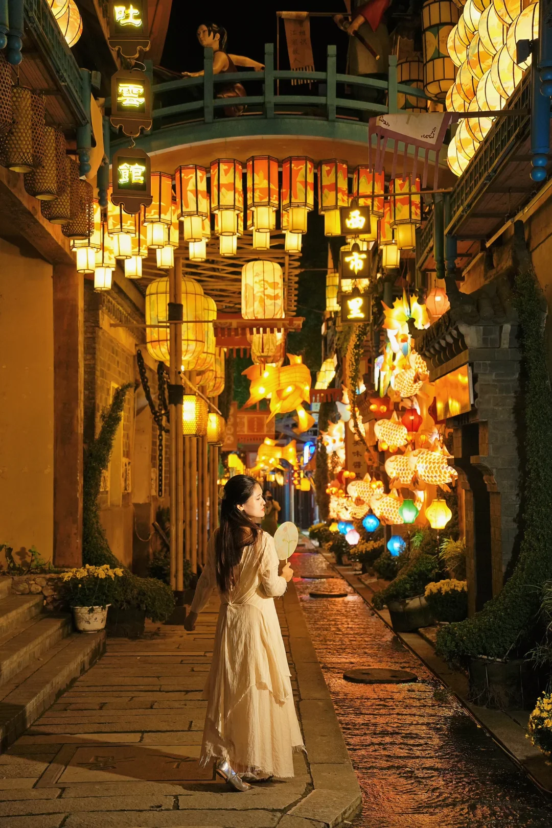 不夜城的夜景相当哇塞!仿古的建筑,搭配各式各样的灯笼,漫步在雾气升腾的巷口路边,仿佛开启美妙的穿越之旅!