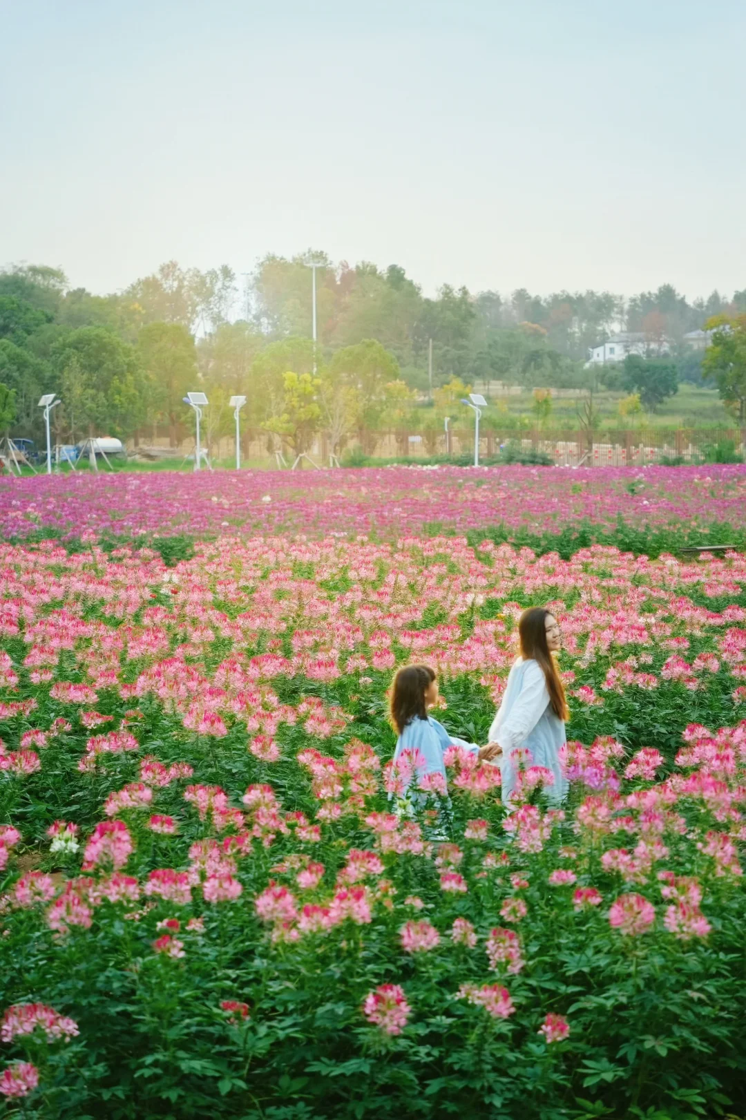白天就在大草坪上露营⛺️,还可以随时去游客设施游玩!在醉蝶花花海拍照!