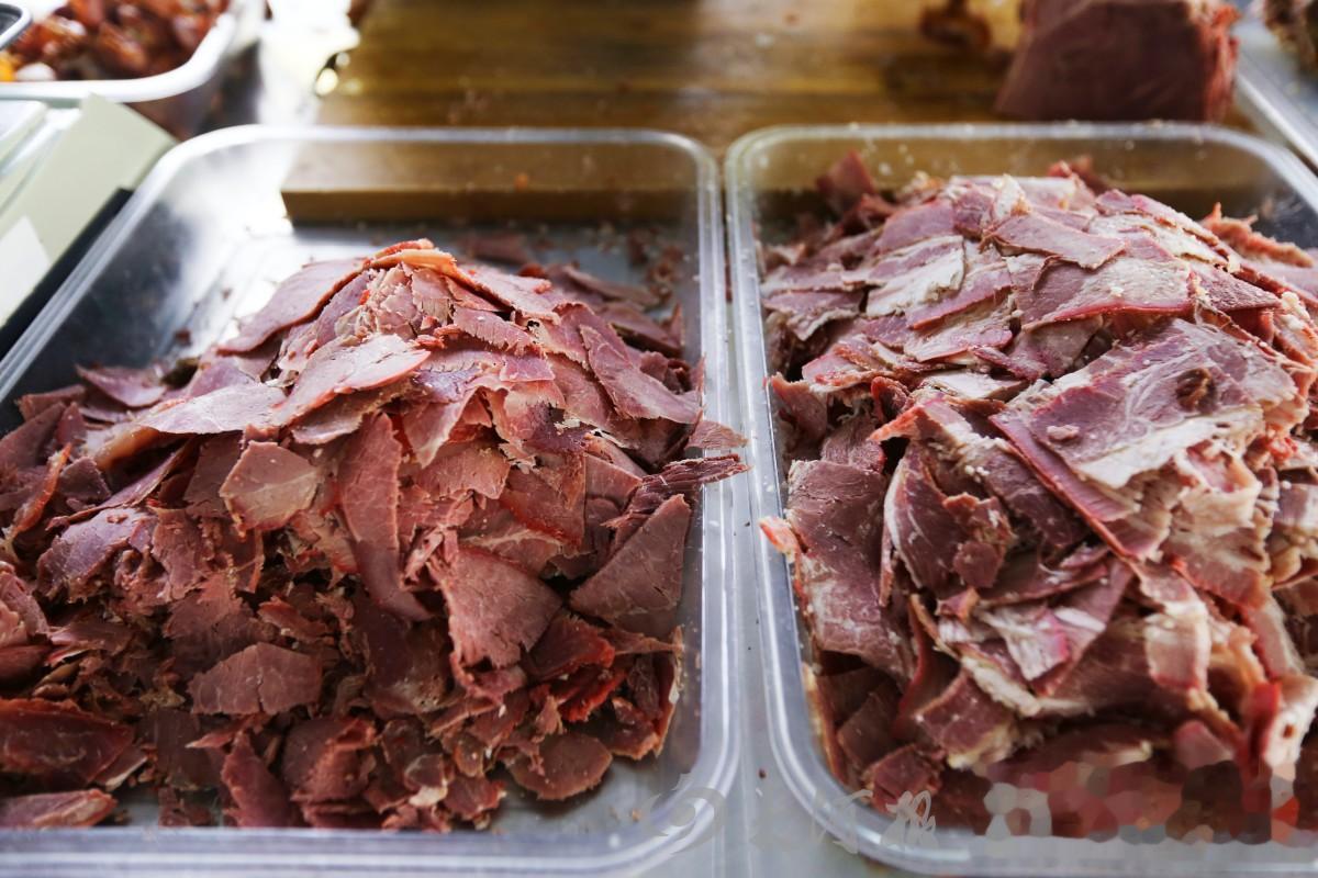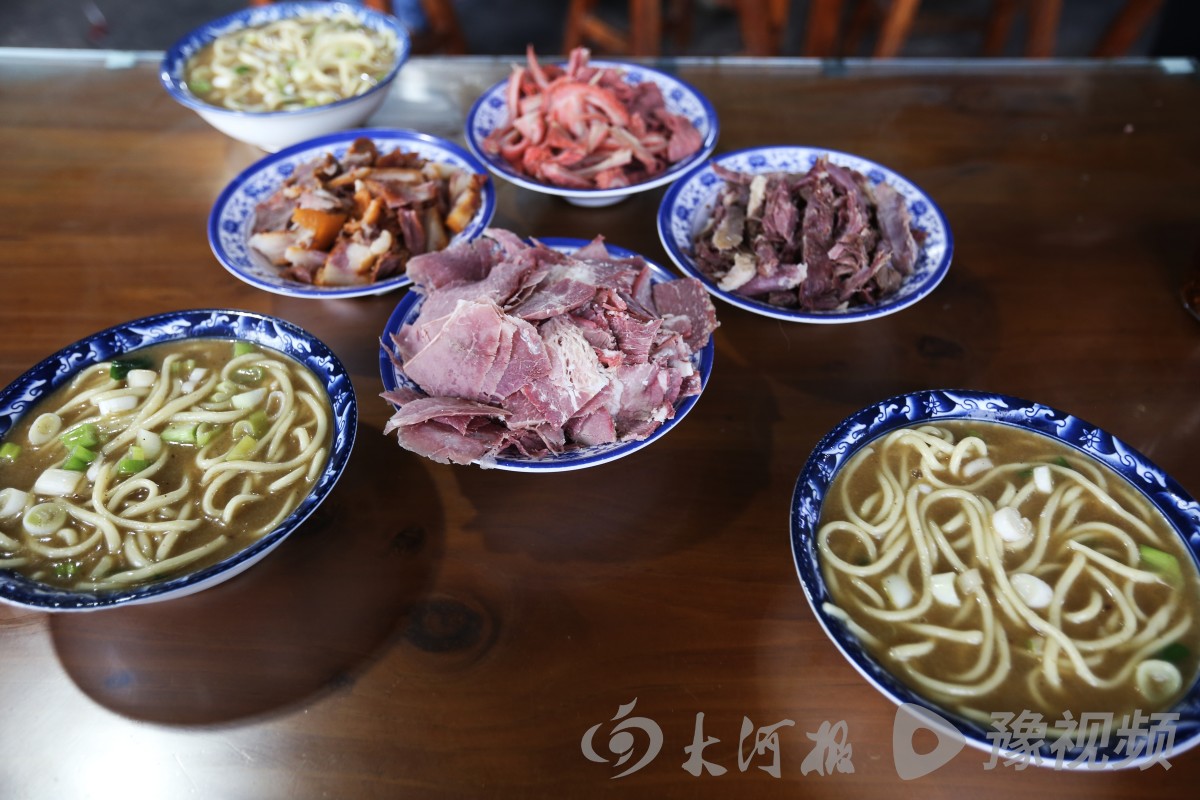 说起盆面条,就不得不说食客们津津乐道的盆面条配菜——五香美味的卤肉。在“五洲盆面条”店里,除了传统盆面条搭配的牛肉、狗肉之外,还有猪头肉、卤大肠等供食客们选择。装碗时,牛肉需切成薄片,光照下透亮诱人;其他肉类可以手撕成条,也可刀切成块,总之,完全根据食客需要而装碗上桌。