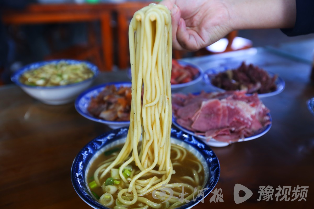 盆面条的精华,不仅在于“素汤荤味”,更在于面条本身的筋道圆润。曹丹丹说,盆面条采用高强筋面粉、水、碱面、食盐、鸡蛋清等原材料和面,中间还要经过反复揉压、醒面,以达到最佳口感。